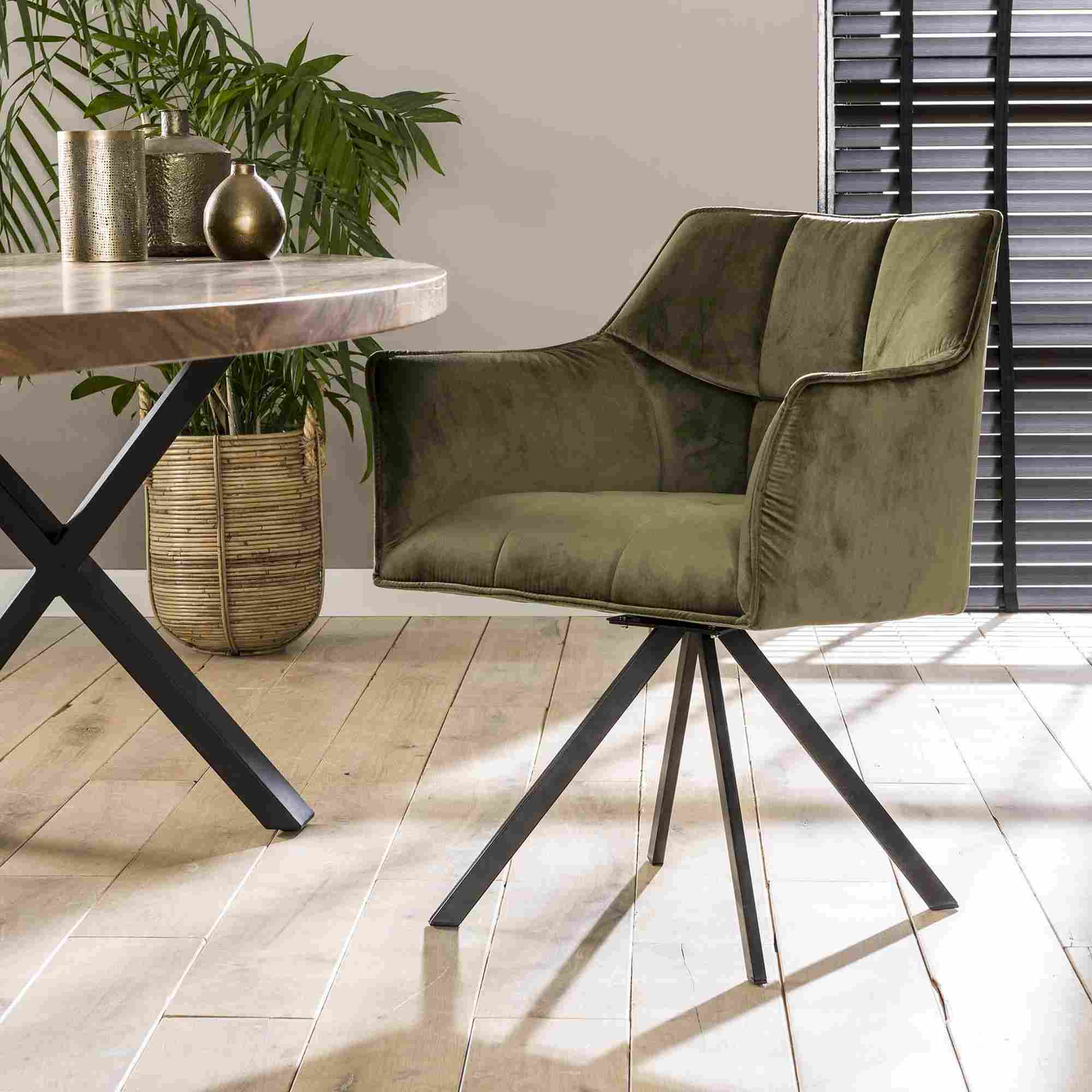 Produktinformationen "2er-Set Armlehnstuhl Spinras Drehbar - Samt, Olive-Grün"
