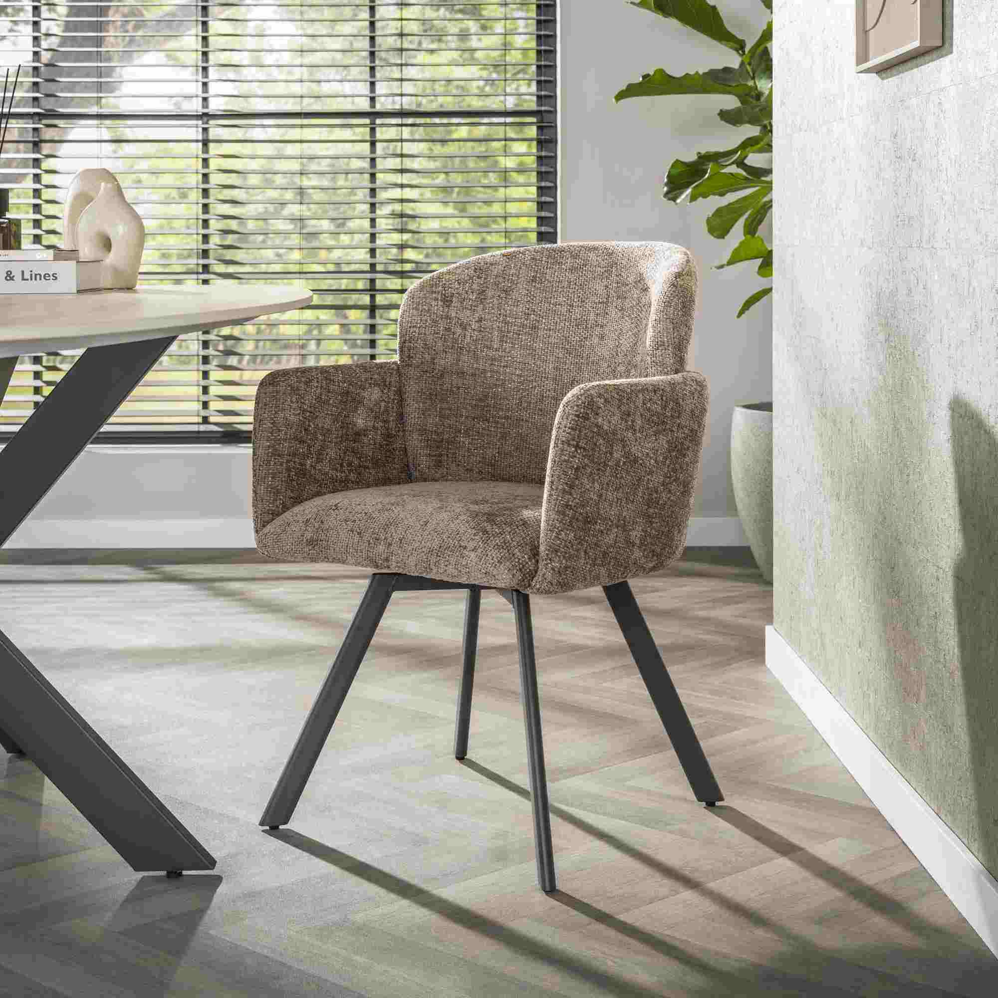 Produktinformationen "2er-Set Armstuhl Ecarm 360° drehbar mit Chenille-Bezug, Champagne"
