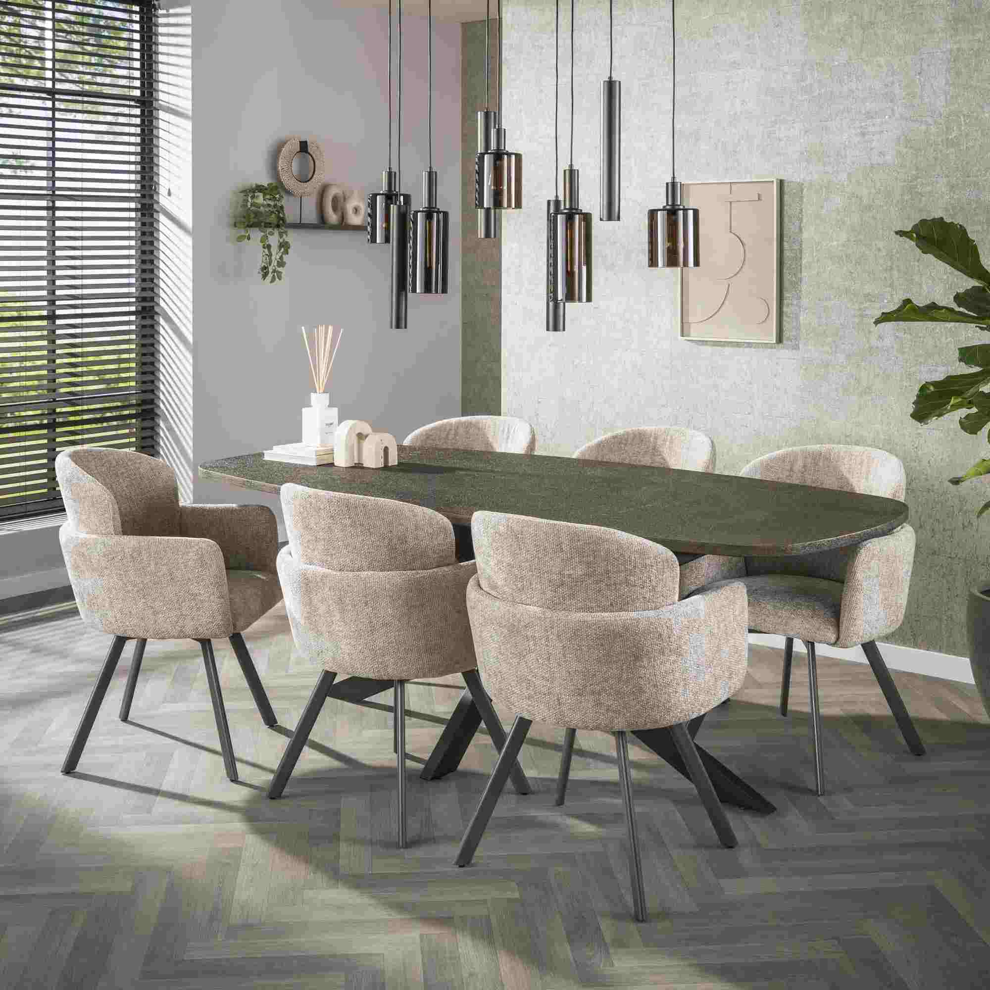 Produktinformationen "2er-Set Armstuhl Ecarm 360° drehbar mit Chenille-Bezug, Sand"