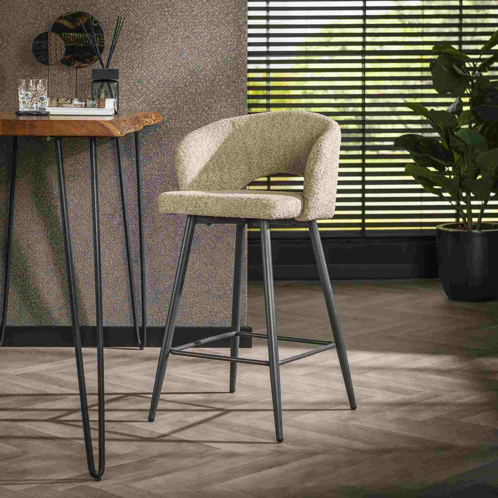 Produktinformationen "2er-Set Barhocker Boulse mit Armlehne - Boucle, Sand"