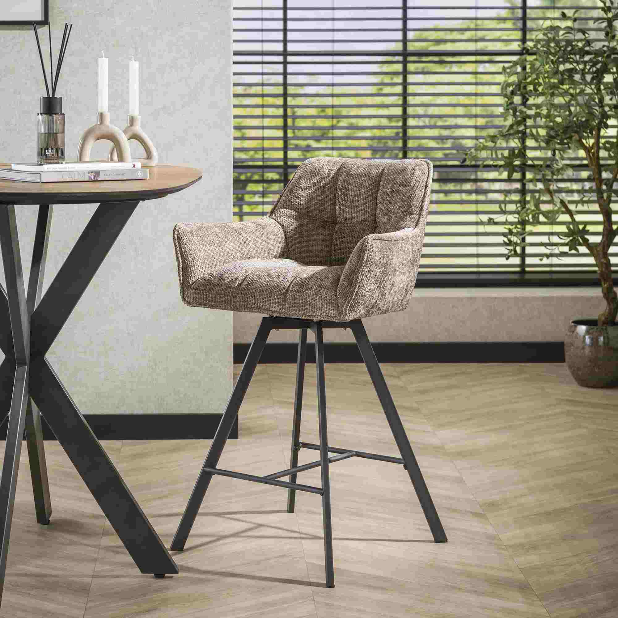 Produktinformationen "2er-Set Barhocker Spinras mit Armlehne, Drehbar - Webstoff, Champagner"