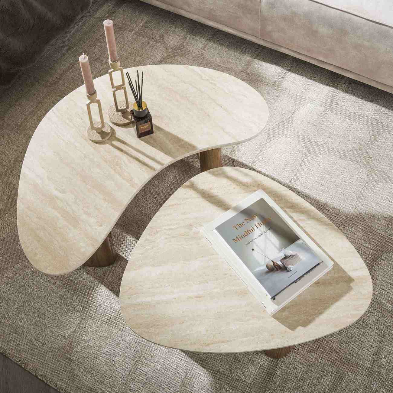 Produktinformationen "2er-Set Couchtisch Joradis - Keramik in Travertin-Optik, Organisch"