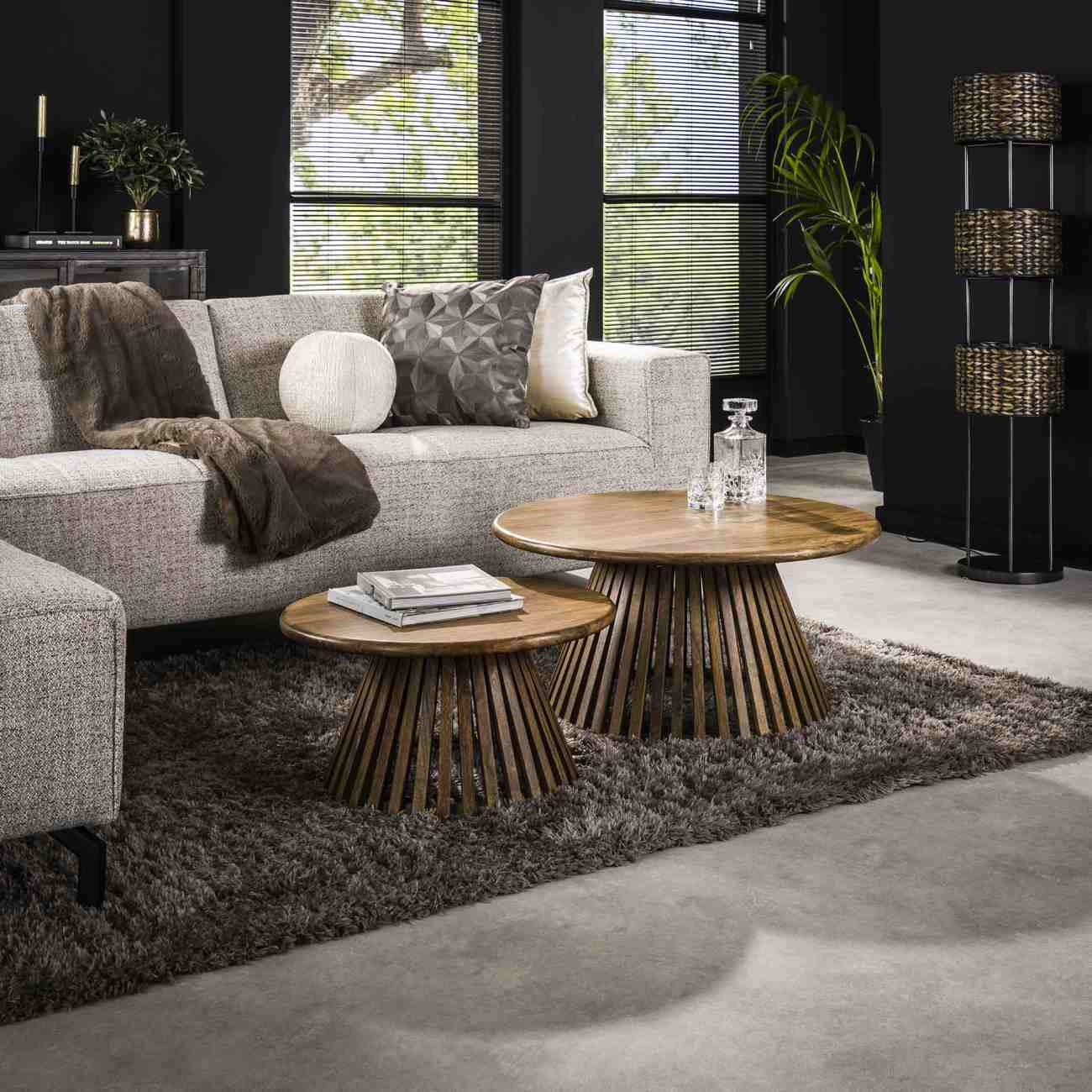 Produktinformationen "2er-Set Couchtisch Tamil - Mangoholz massiv Braun, Ø 60 / 80 cm"