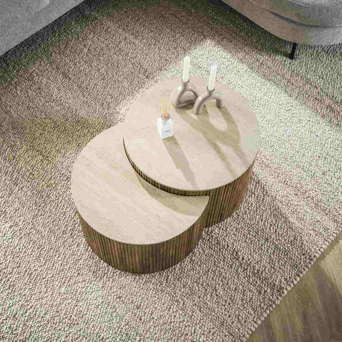 Produktinformationen "2er-Set Couchtisch Tratin - Mangoholz massiv Braun, Halbrund"