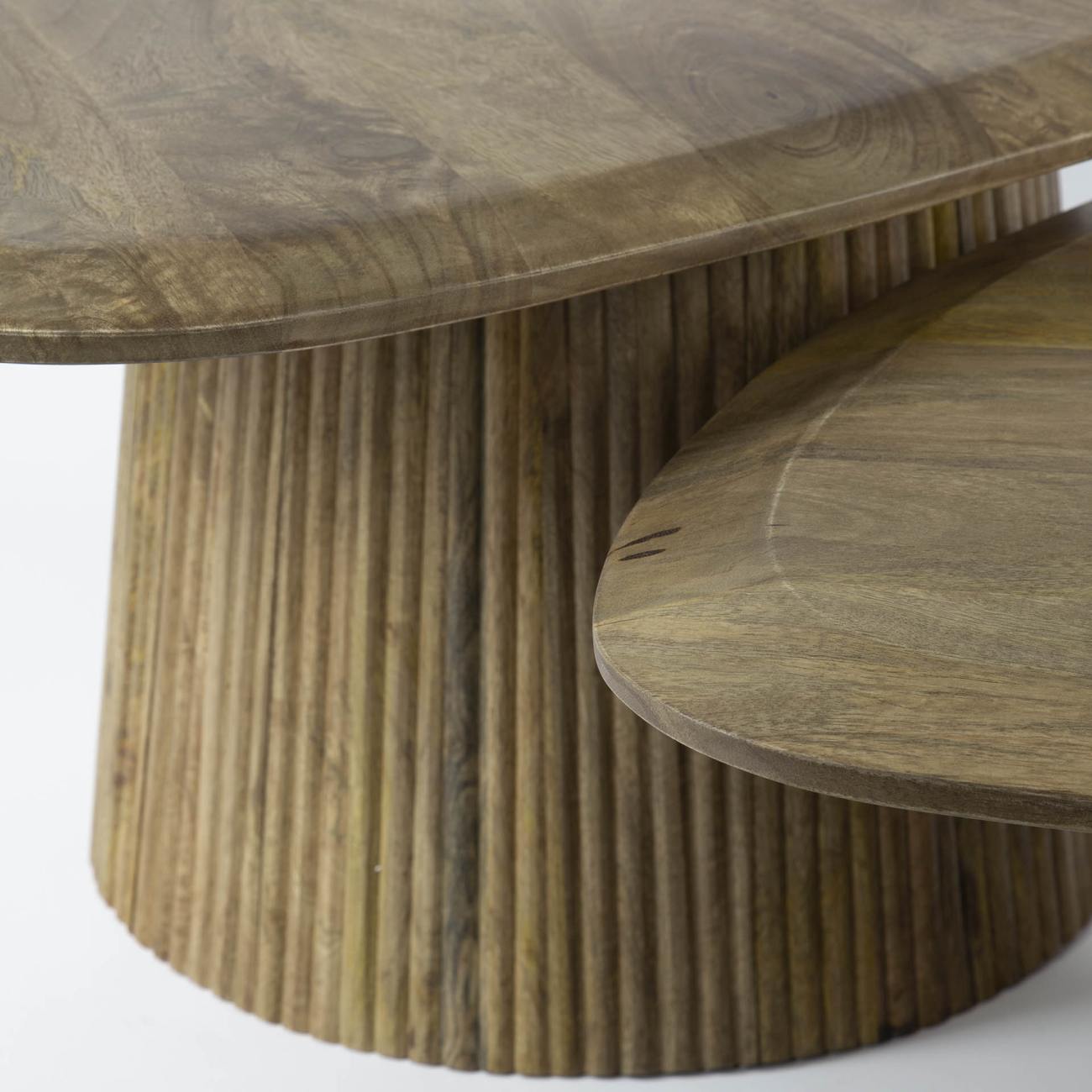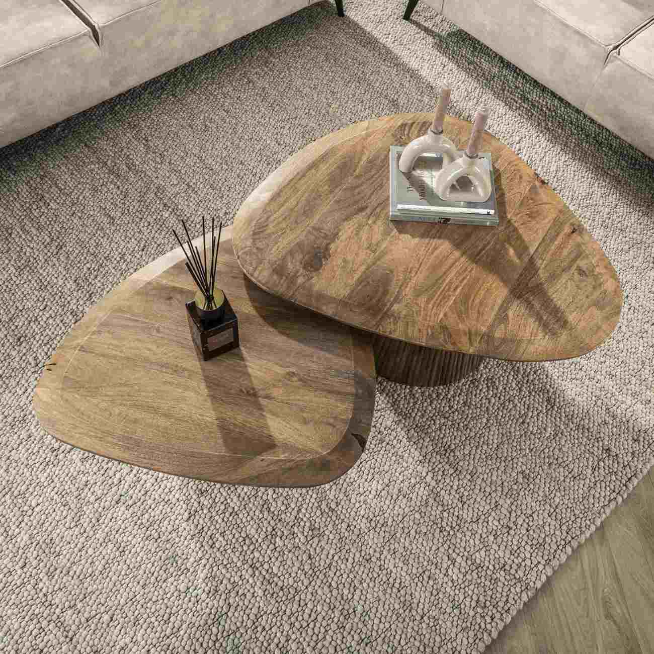 Produktinformationen "2er-Set Couchtisch Vagula - Natur Mangoholz, Wellenmuster, Dreieckig"