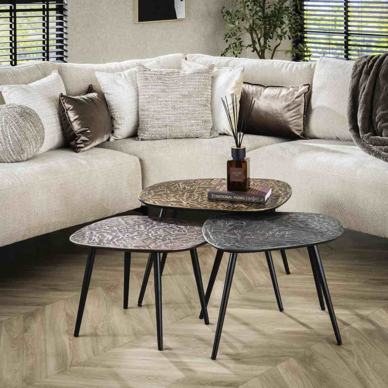 Produktinformationen "3er-Set Couchtisch Nopal - Metall in 3 Farben, Viereckig"