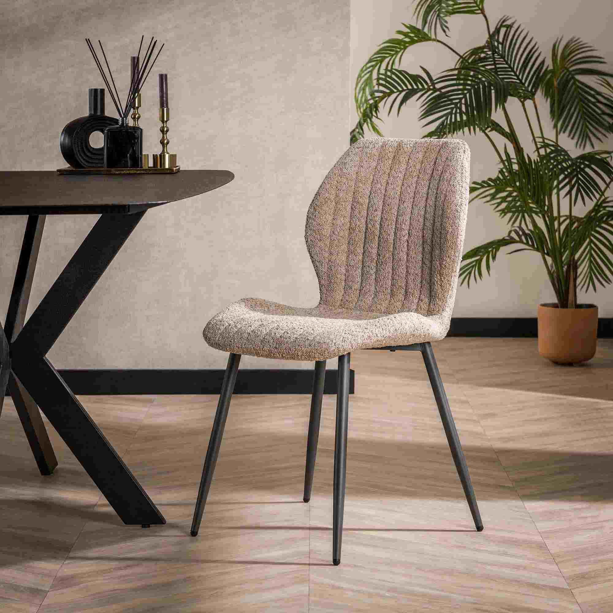 Produktinformationen "4er-Set Esszimmerstuhl Lumbclé mit Lendenstütze - Boucle, Sand"