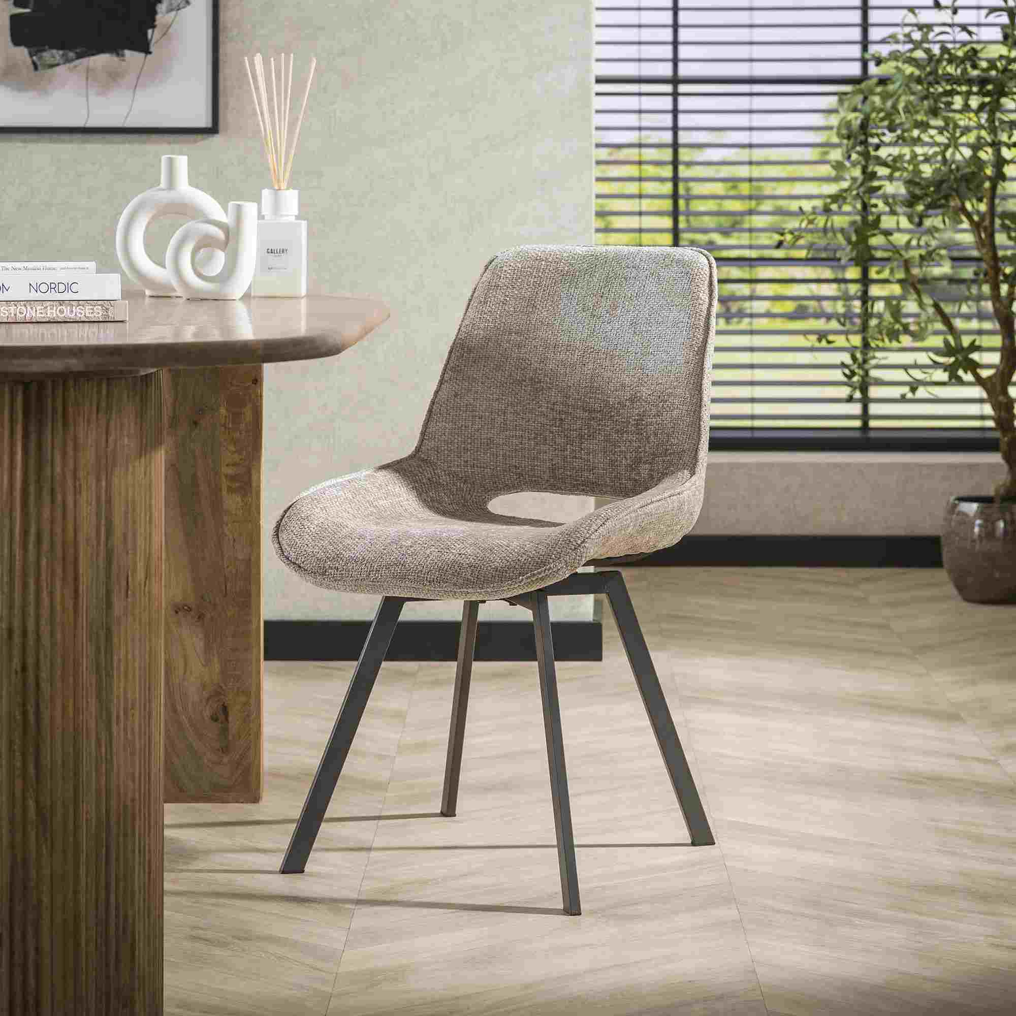 Produktinformationen "4er-Set Esszimmerstuhl Tuville - Webstoff, Drehbar, Sand"