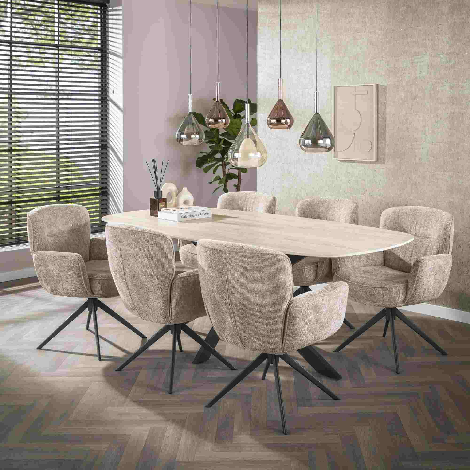 Produktinformationen "Armstuhl Azora 2er-Set mit Drehfunktion mit Chenille-Bezug, Sand"