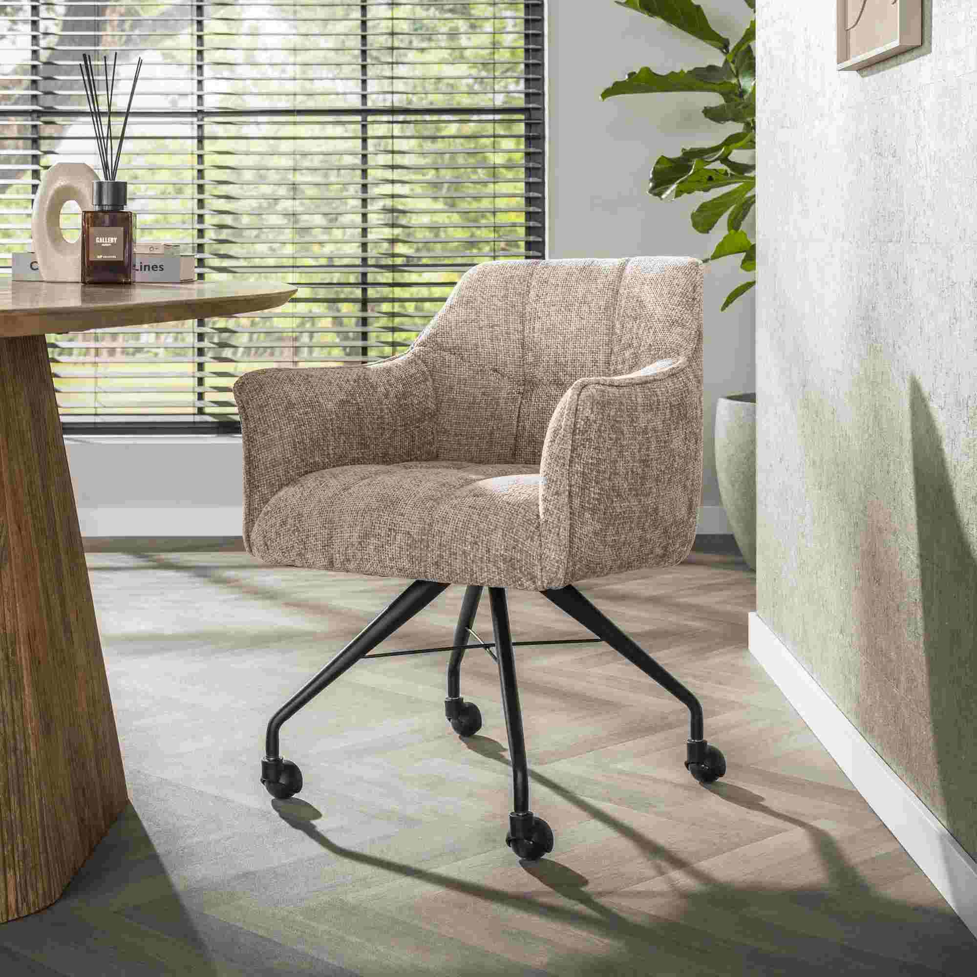 Produktinformationen "Armstuhl Retar 2er-Set auf Rollen mit Steppnähten, Chenille-Bezug, Sand"
