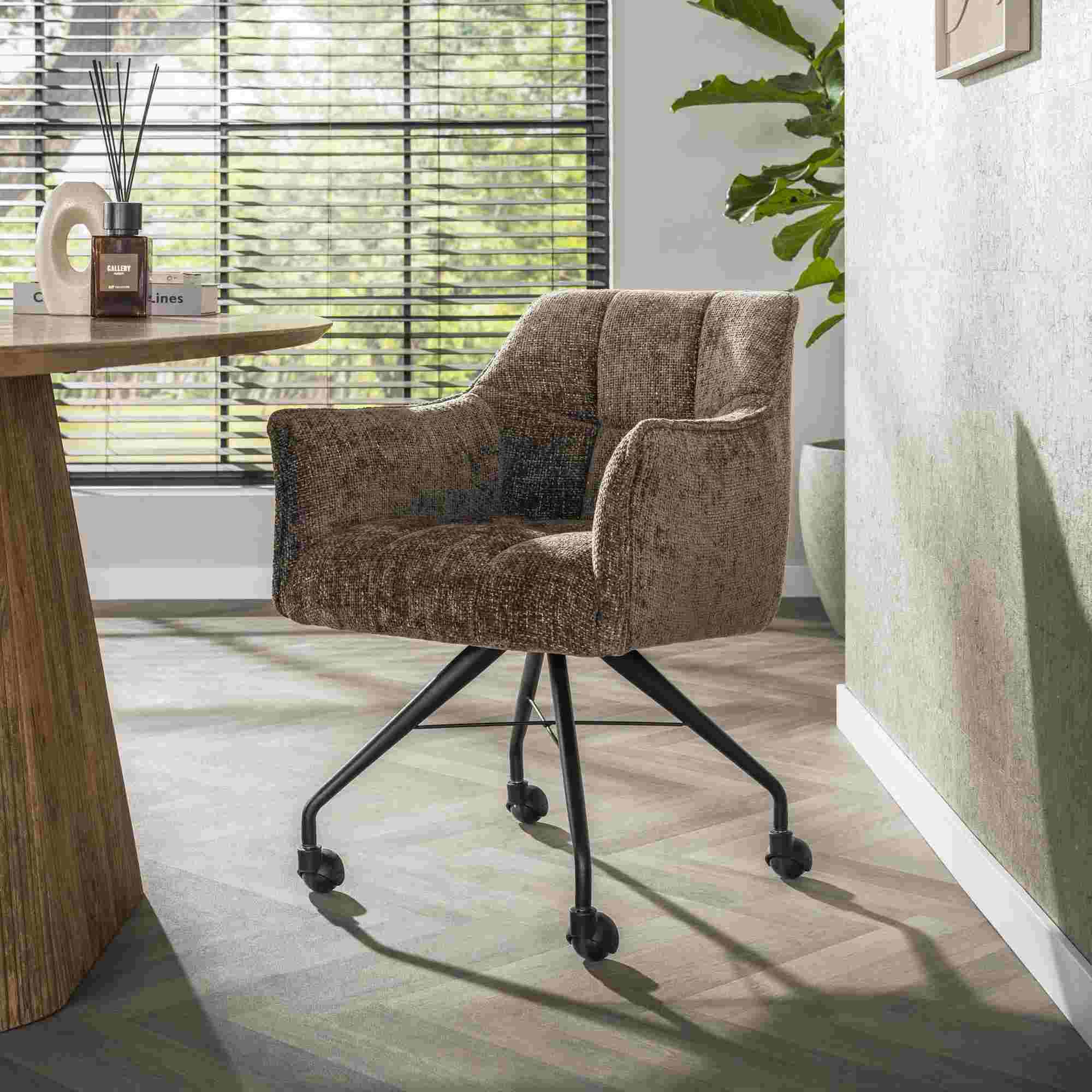 Produktinformationen "Armstuhl Retar 2er-Set auf Rollen mit Steppnähten, Chenille-Bezug, Taupe"
