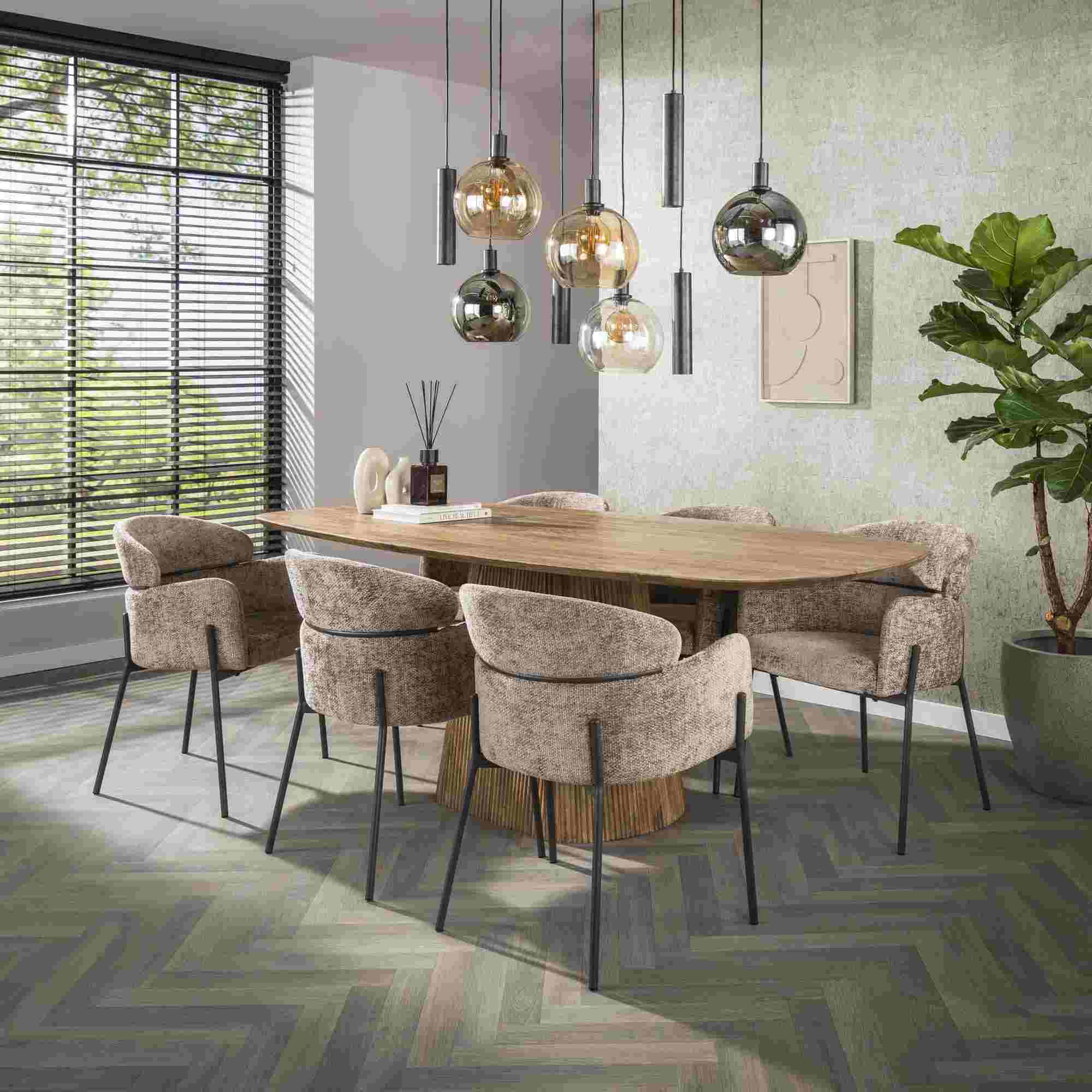 Produktinformationen "Armstuhl Vura 2er-Set mit Chenille-Bezug und Metallgestell, Champagne"