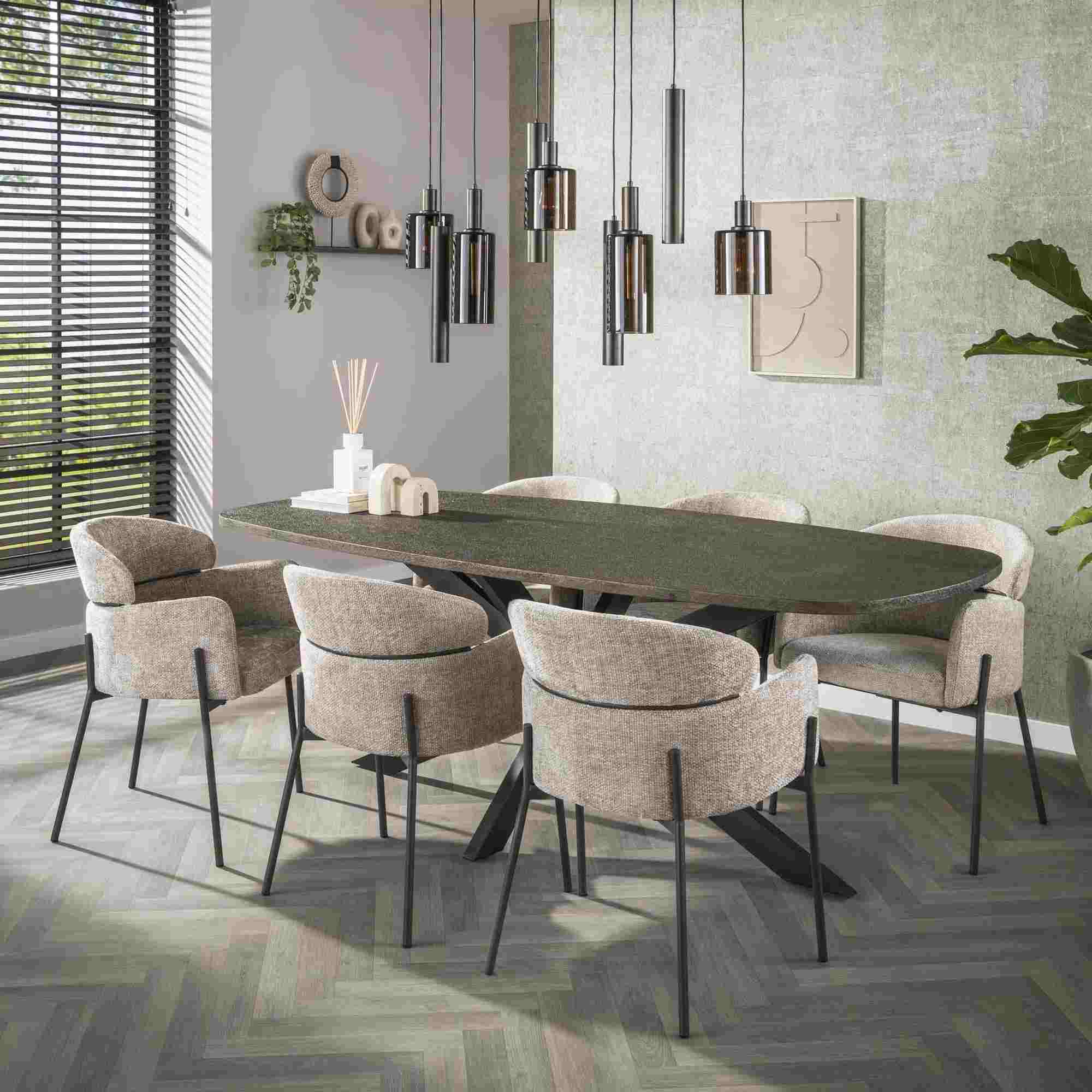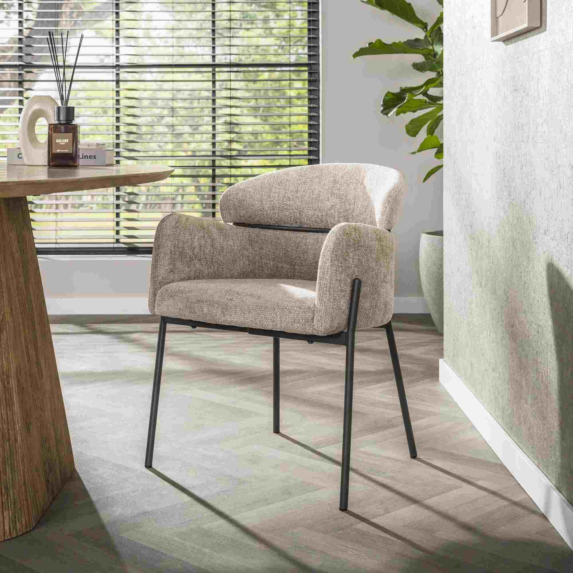 Produktinformationen "Armstuhl Vura 2er-Set mit Chenille-Bezug und Metallgestell, Sand"