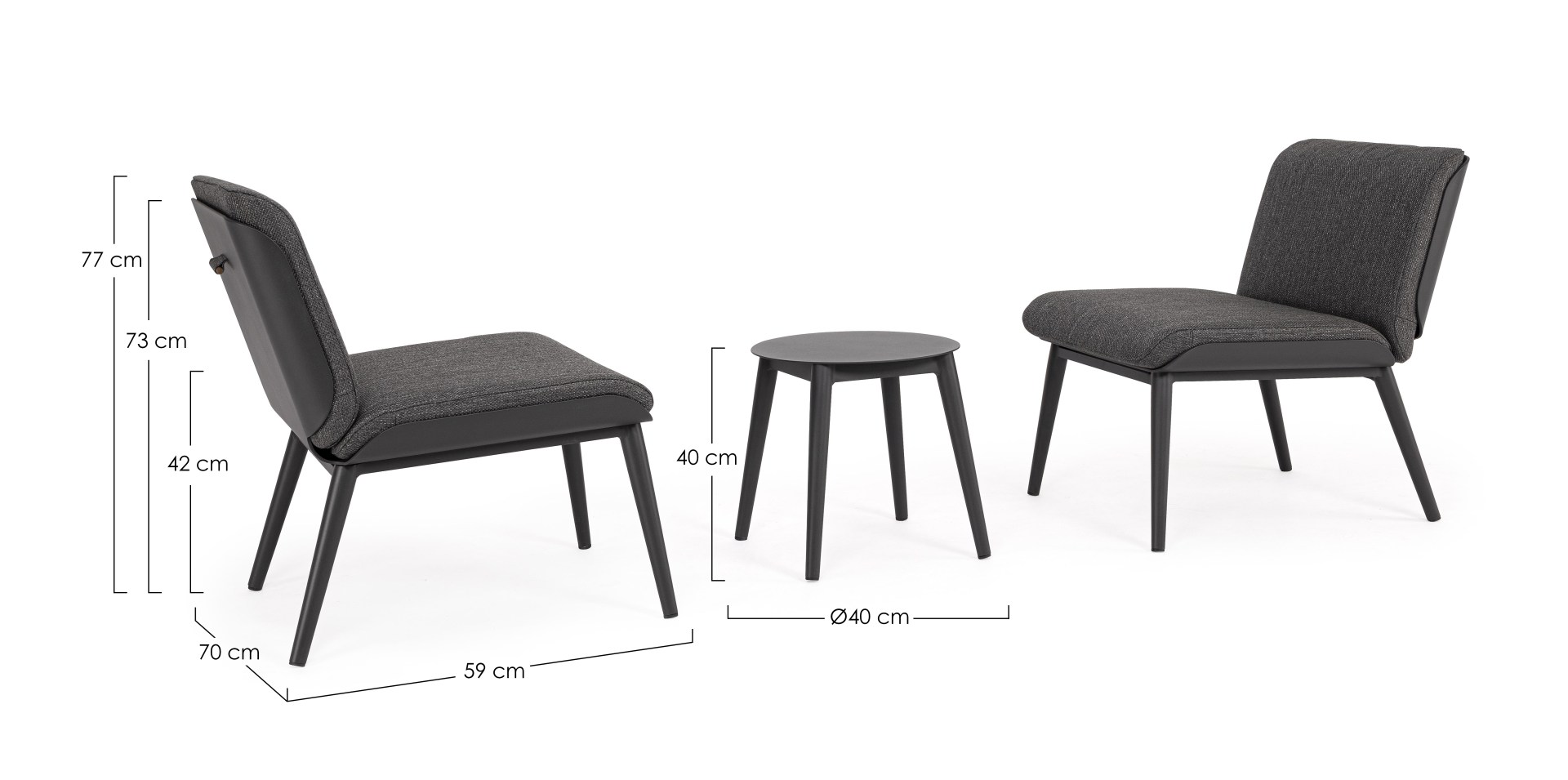 Abmessungen BxTxH: | Sessel: 59x70x77 cm / Tisch: 40x40x40 cm |