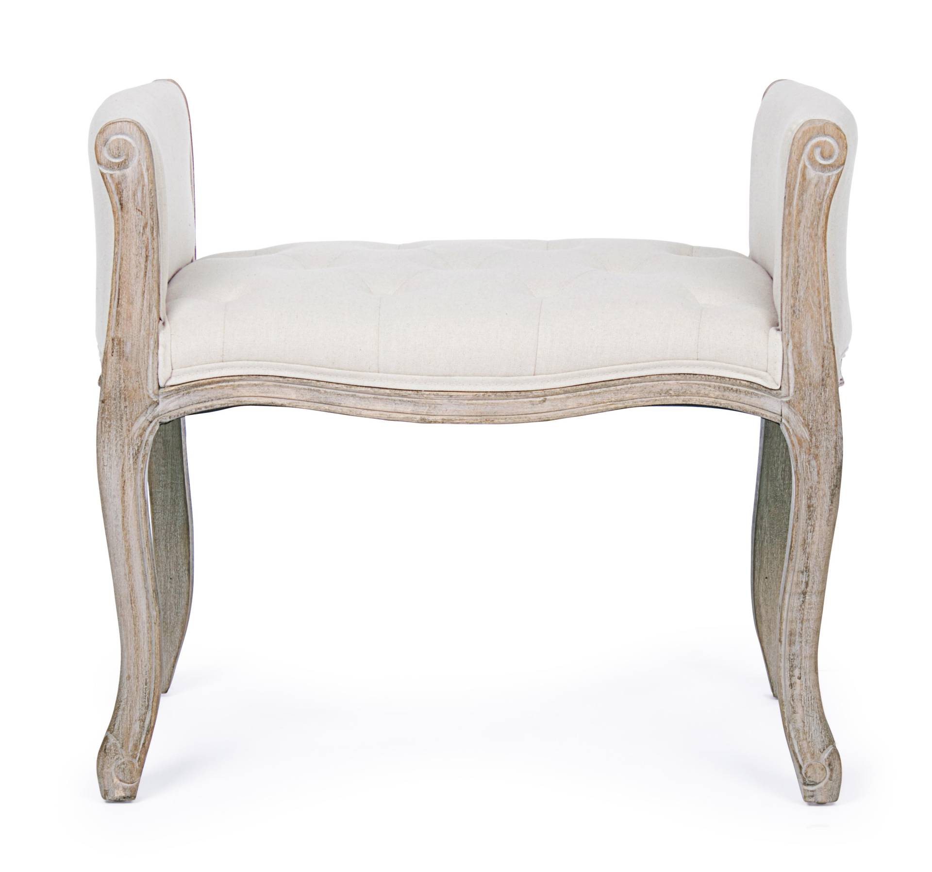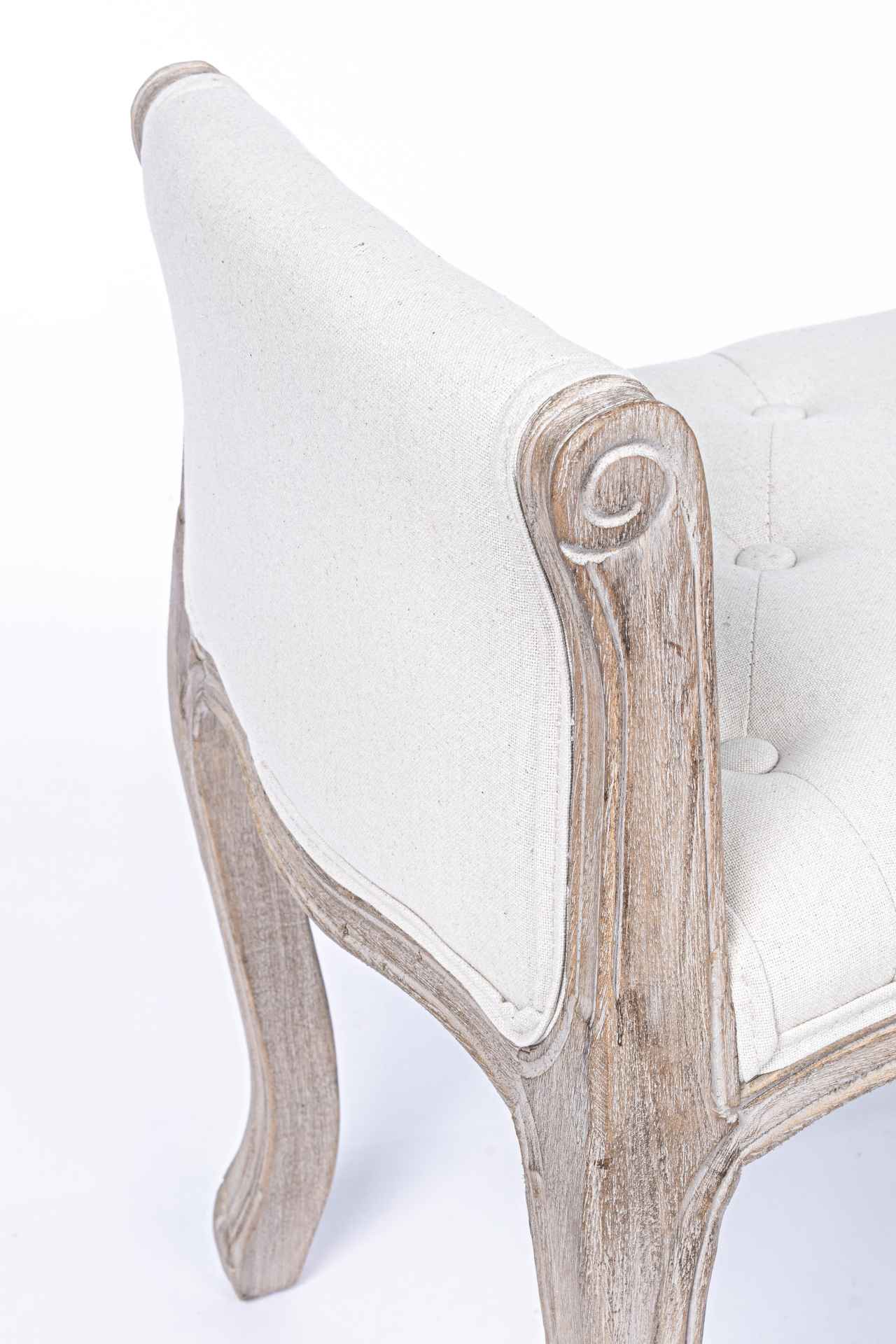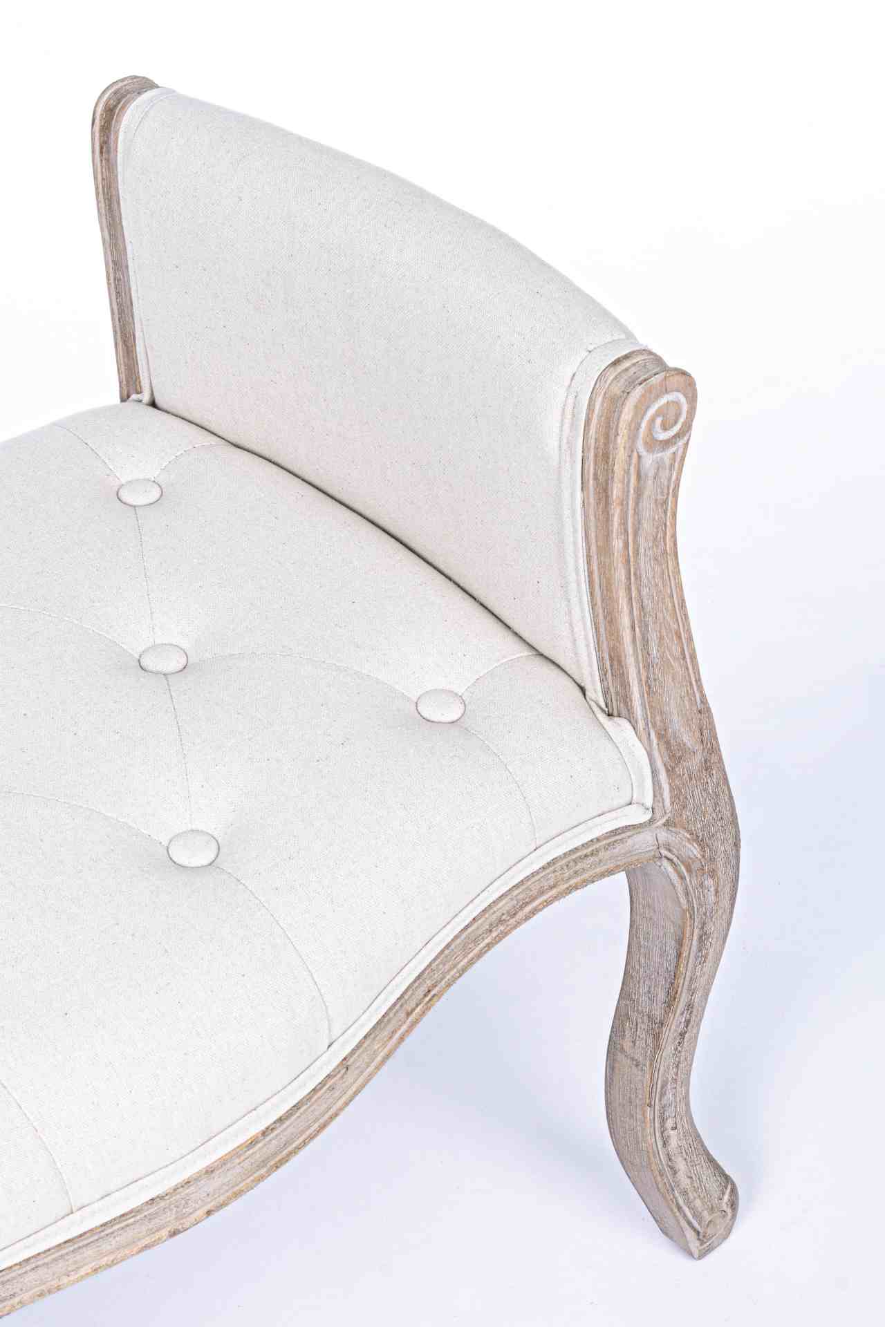 Traumhafte Sitzbank Diva von Bizzotto aus massiven Holz gefertigt und aufgrund der filigranen Formensprache ideal zur Ergänzung mit weiteren Wohnstilen. Der gepolsterte Stoffbezug besteht zum Teil aus Baumwolle, Leinen und Polyester und ist robust und pflegeleicht.