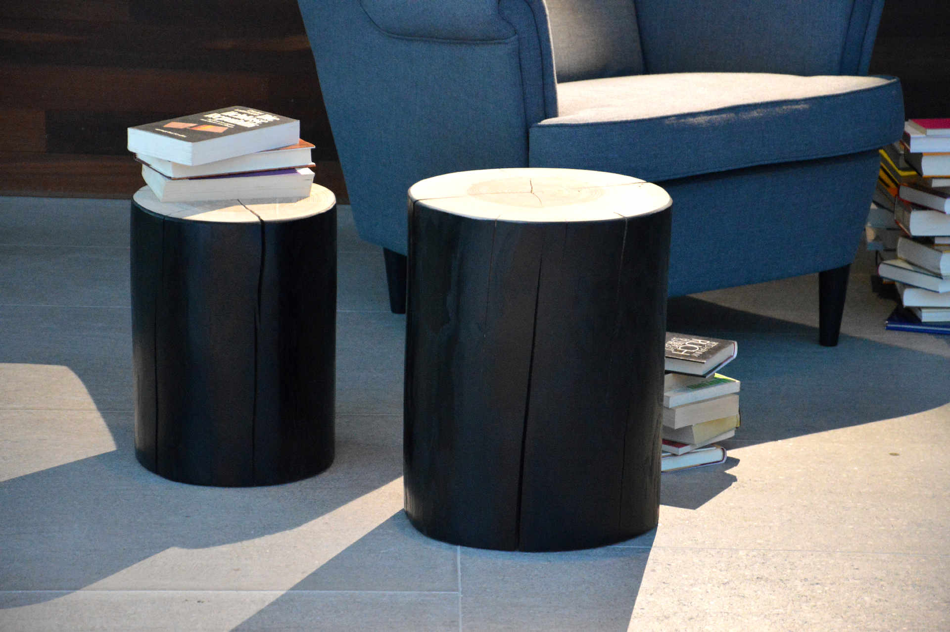 Produktinformationen "Beistelltisch Block rund, Kernesche massiv, Schwarz, H 38 cm"
