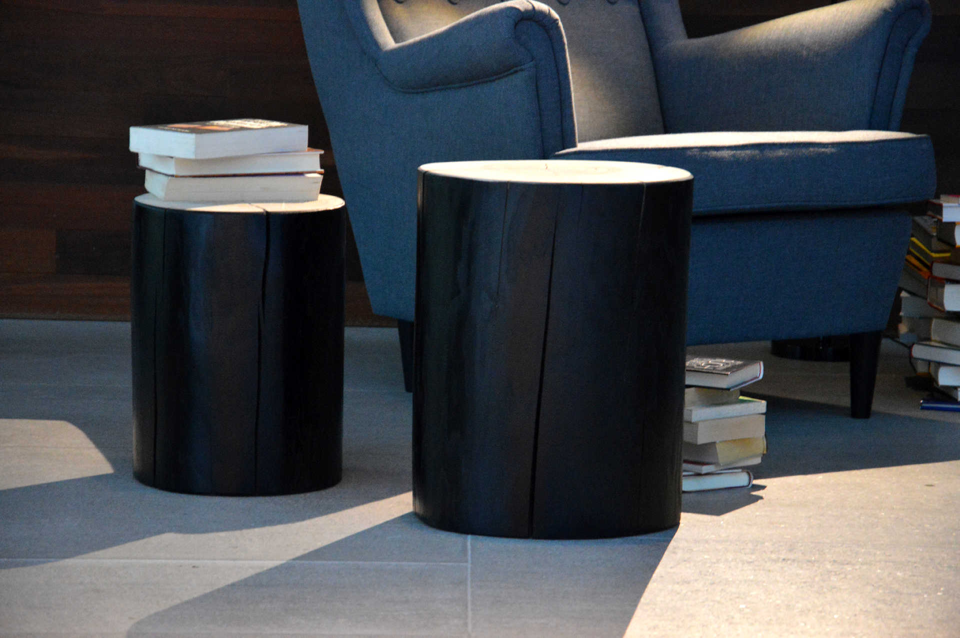 Produktinformationen "Beistelltisch Block rund, Kernesche massiv, Schwarz, H 46cm"