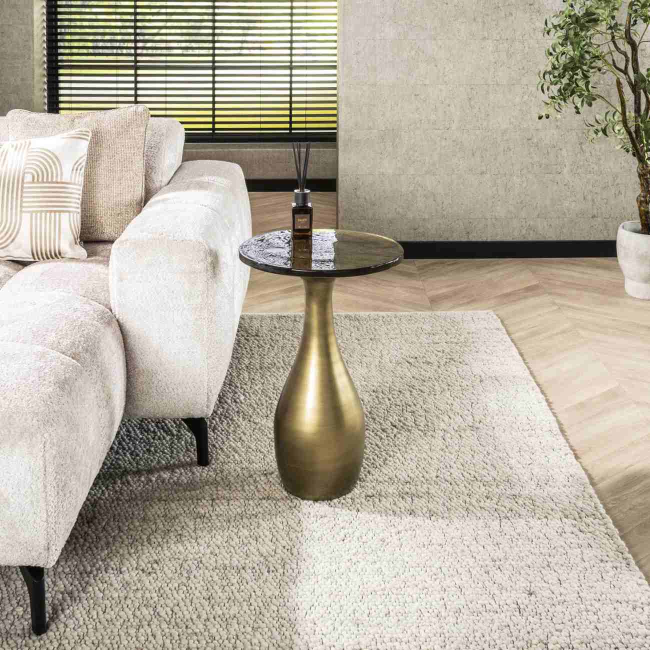 Produktinformationen "Beistelltisch Klidun Tropfen - Glas & Metall, Antikgold, Größe M"