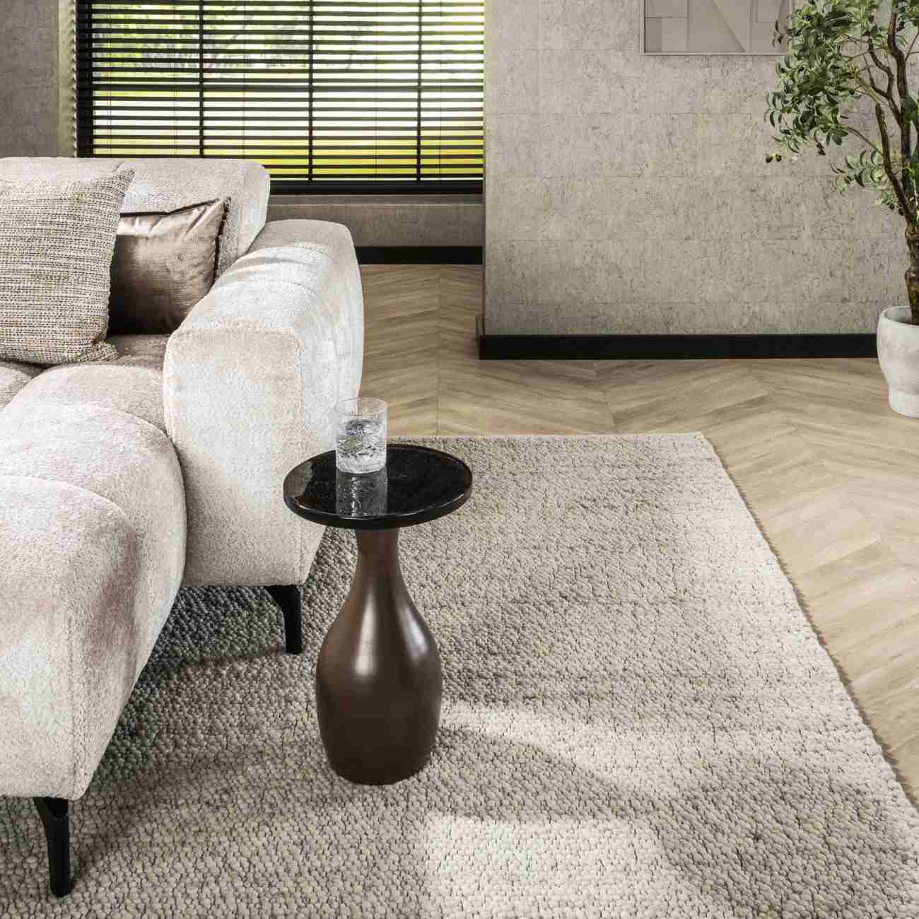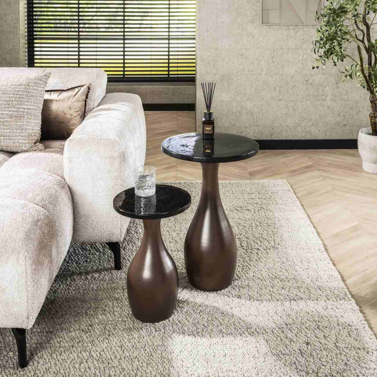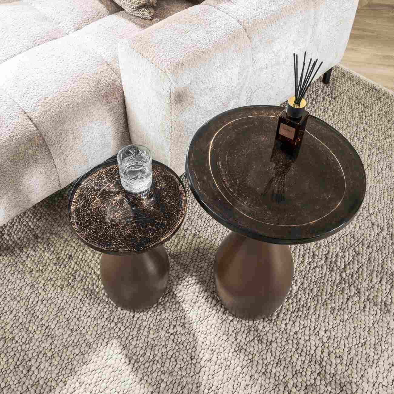 Produktinformationen "Beistelltisch Klidun Tropfen - Glas & Metall, Antikkupfer, Größe S"