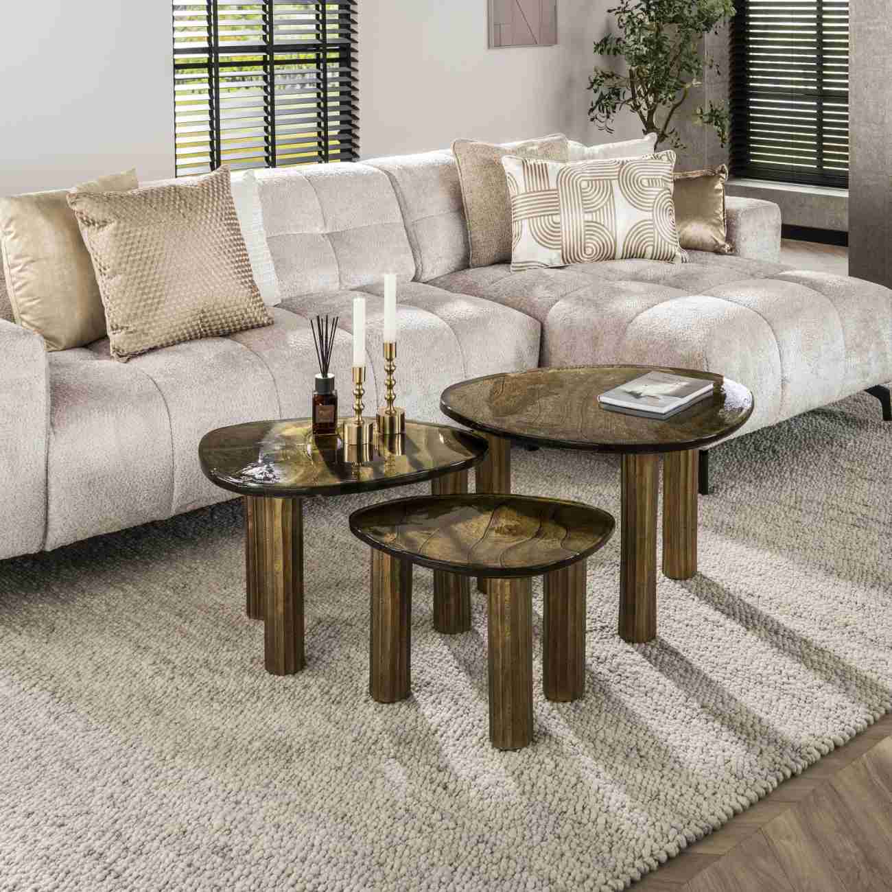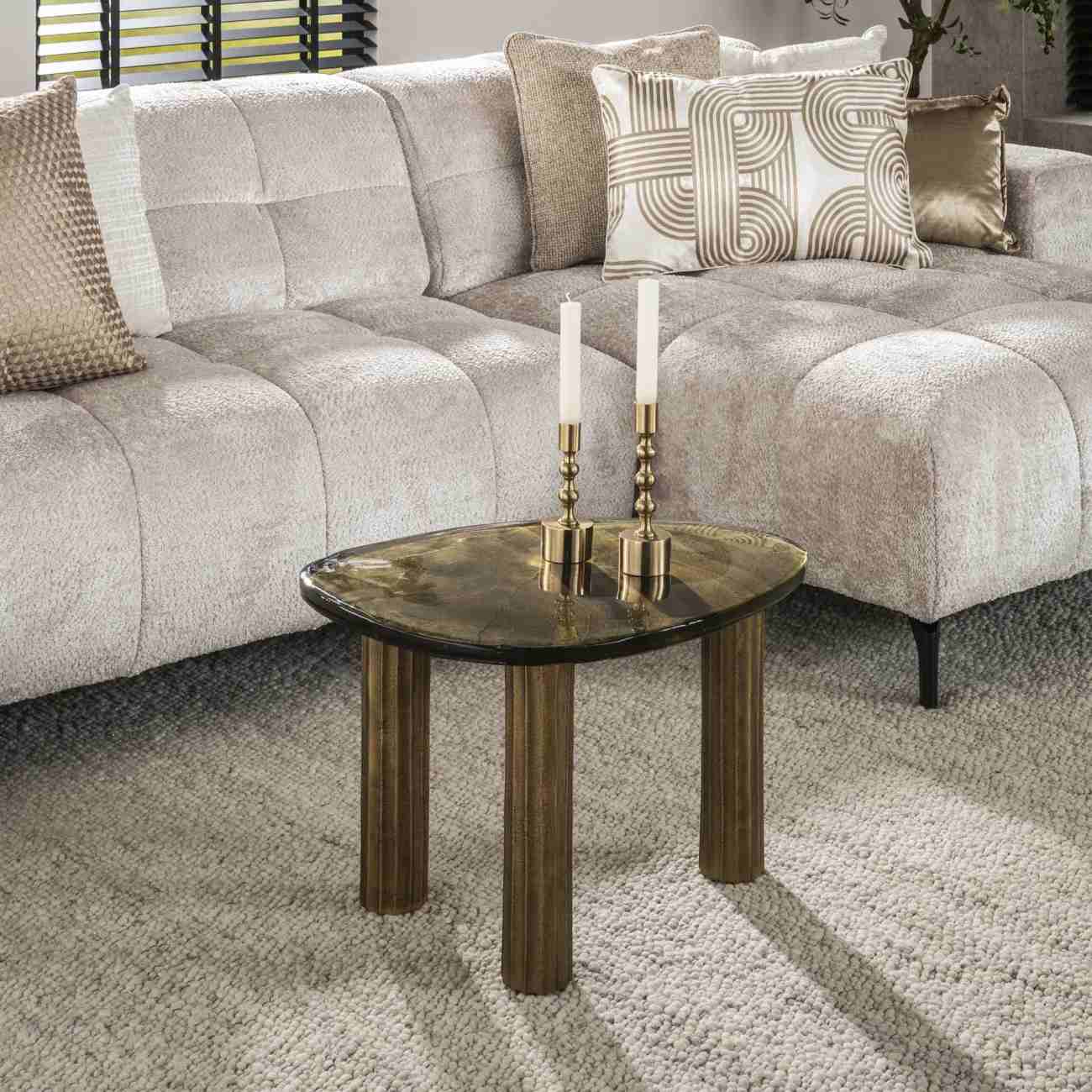 Produktinformationen "Couchtisch Klidun - Glas & Aluminium, Antikgold, Größe M"
