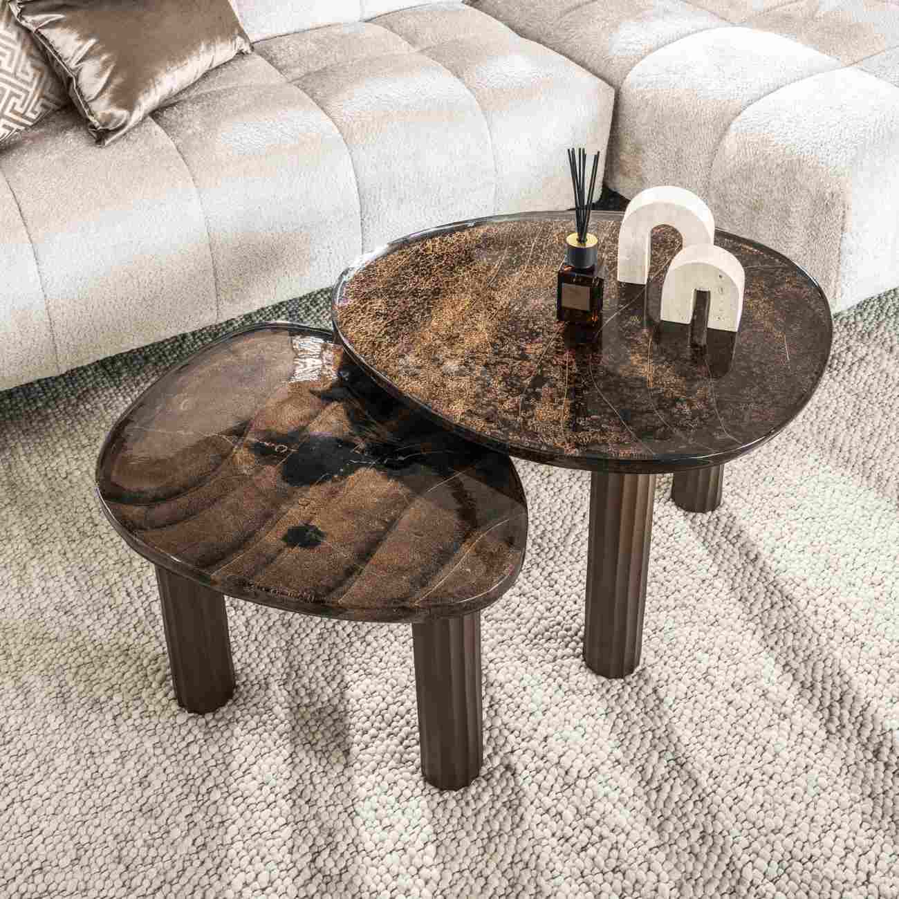 Produktinformationen "Couchtisch Klidun - Glas & Aluminium, Antikkupfer, Größe M"