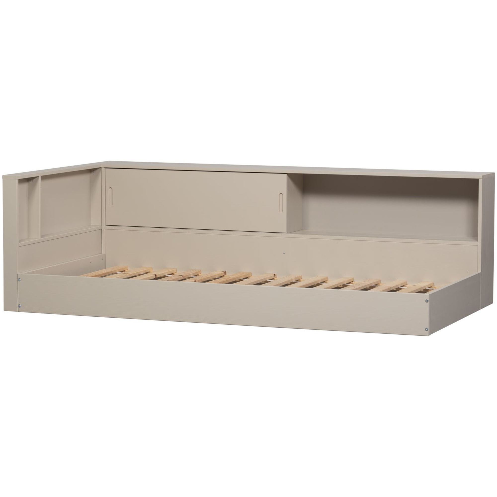 Produktinformationen "Eckbett Carter Kiefer [FSC] Hellgrau - modernes Stauraumbett in L-Form, 215 x 118 x 67 cm"