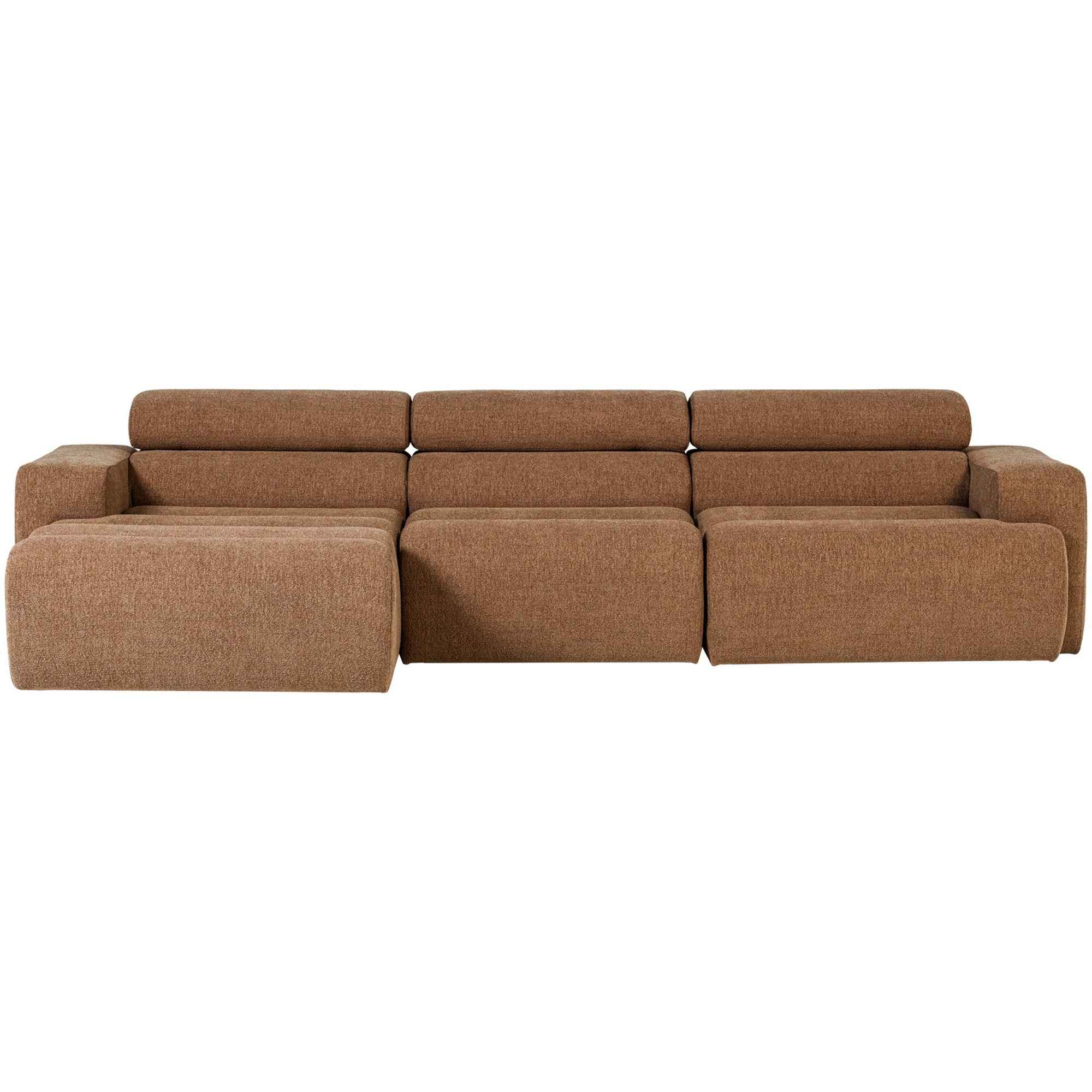 Produktinformationen "Ecksofa Novi Bouclé Karamellbraun - Chaiselongue mit verstellbarer Nackenstütze, Links"