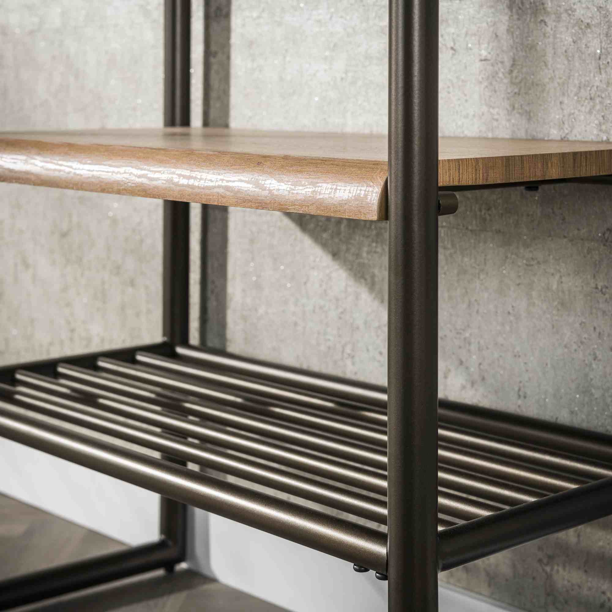 Produktinformationen "Garderobenmöbel Onul 70 cm Metall Bronze mit Ablagen in Eichenoptik"