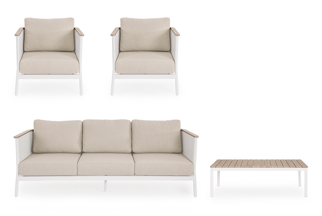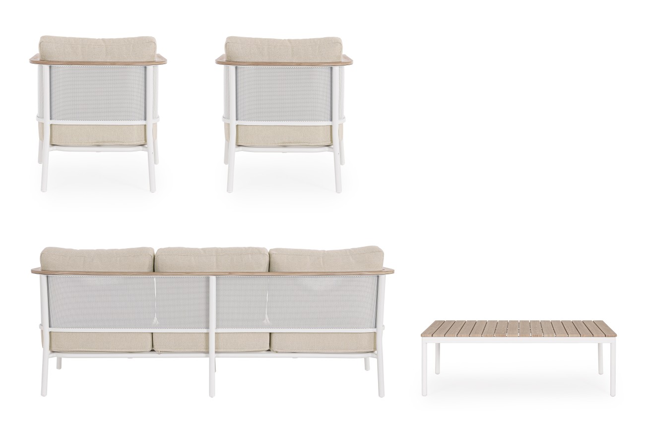 Abmessungen BxTxH: | Sofa: 207x82x83 cm / Sessel: 77x82x83 cm / Tisch: 120x70x38 cm |