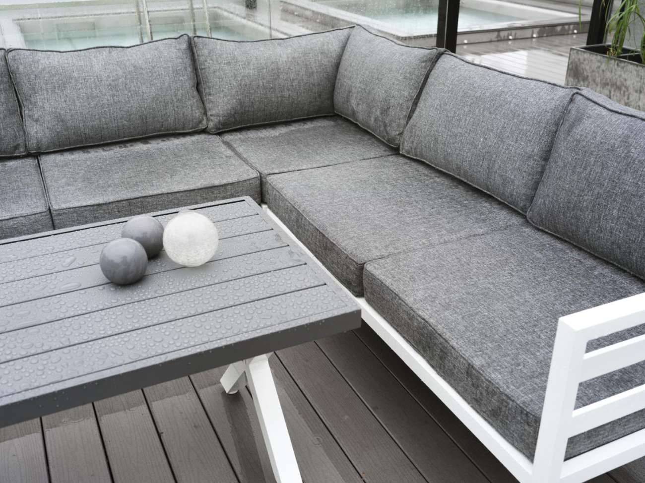 Erleben Sie den Komfort und die Eleganz unseres Gartenecksofas, das Ihre Outdoor-Oase um eine luxuriöse Note bereichert. Dieses Möbelstück vereint modernes Design mit robusten Materialien und bietet Ihnen und Ihren Gästen einen großzügigen und stilvollen Platz im Freien. Das Gartenecksofa ist nicht nur ein funktionales Möbelstück, sondern auch ein Blickfang in Ihrem Garten oder auf Ihrer Terrasse. Seine L-förmige Konstruktion nutzt den verfügbaren Platz optimal aus und schafft eine einladende Atmosphäre für gesellige Zusammenkünfte oder entspannte Stunden unter freiem Himmel. Genießen Sie die warmen Sommerabende auf den weichen Kissen und erleben Sie den Luxus von Komfort und Entspannung im Freien. Ob beim Grillen mit der Familie, beim Plaudern mit Freunden oder beim Lesen eines Buches – das Gartenecksofa bietet Ihnen einen Ort der Ruhe und Erholung. Entdecken Sie die Vielseitigkeit und die Möglichkeiten unseres Gartenecksofas und lassen Sie sich von seiner Qualität und seinem Design begeistern. Gönnen Sie sich das Vergnügen eines Möbelstücks, das nicht nur Ihren Außenbereich verschönert, sondern auch Ihre Lebensqualität im Freien bereichert.