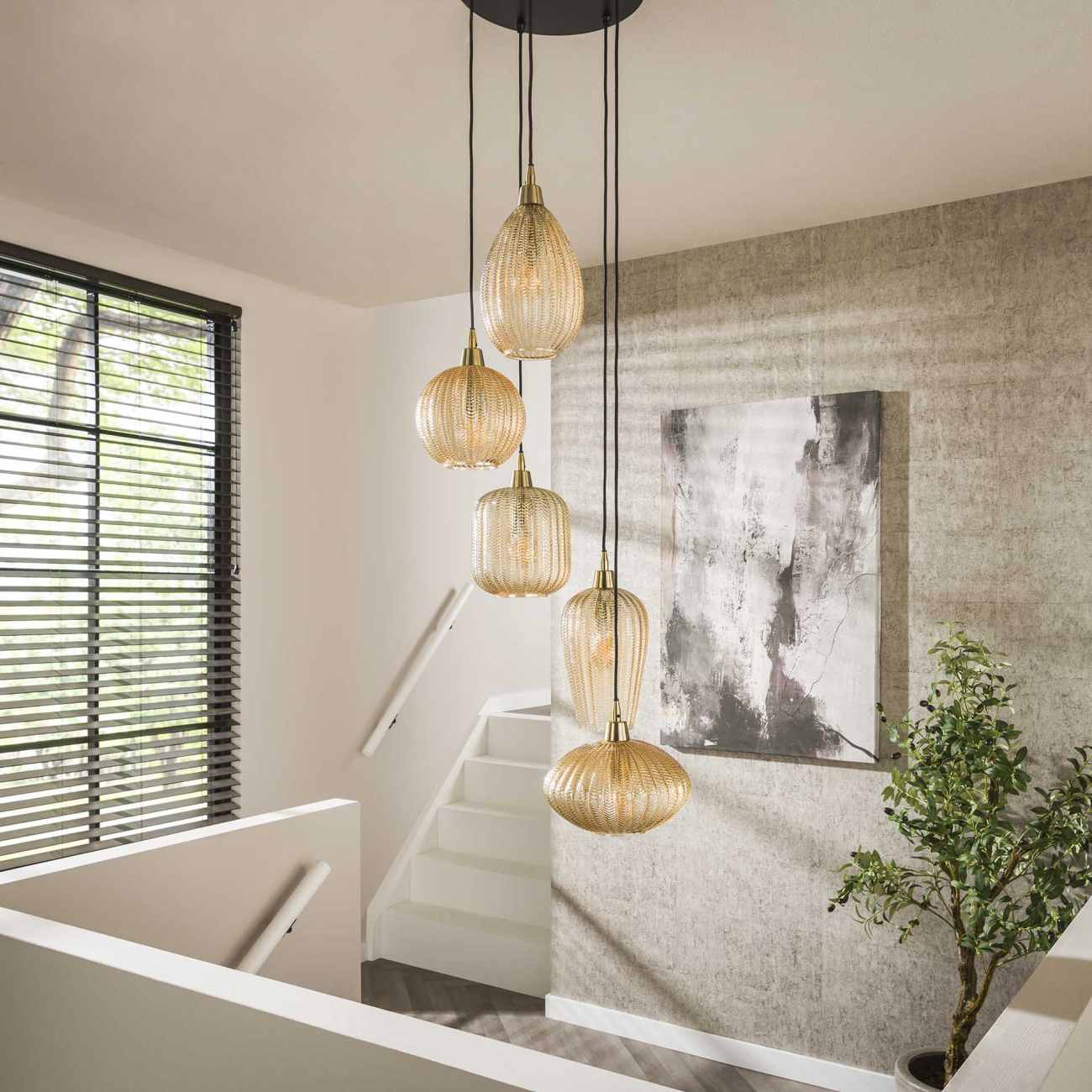 Produktinformationen "Hängeleuchte Ambelvira, 5-flammig - Bernsteinglas geriffelt, inkl. LED"