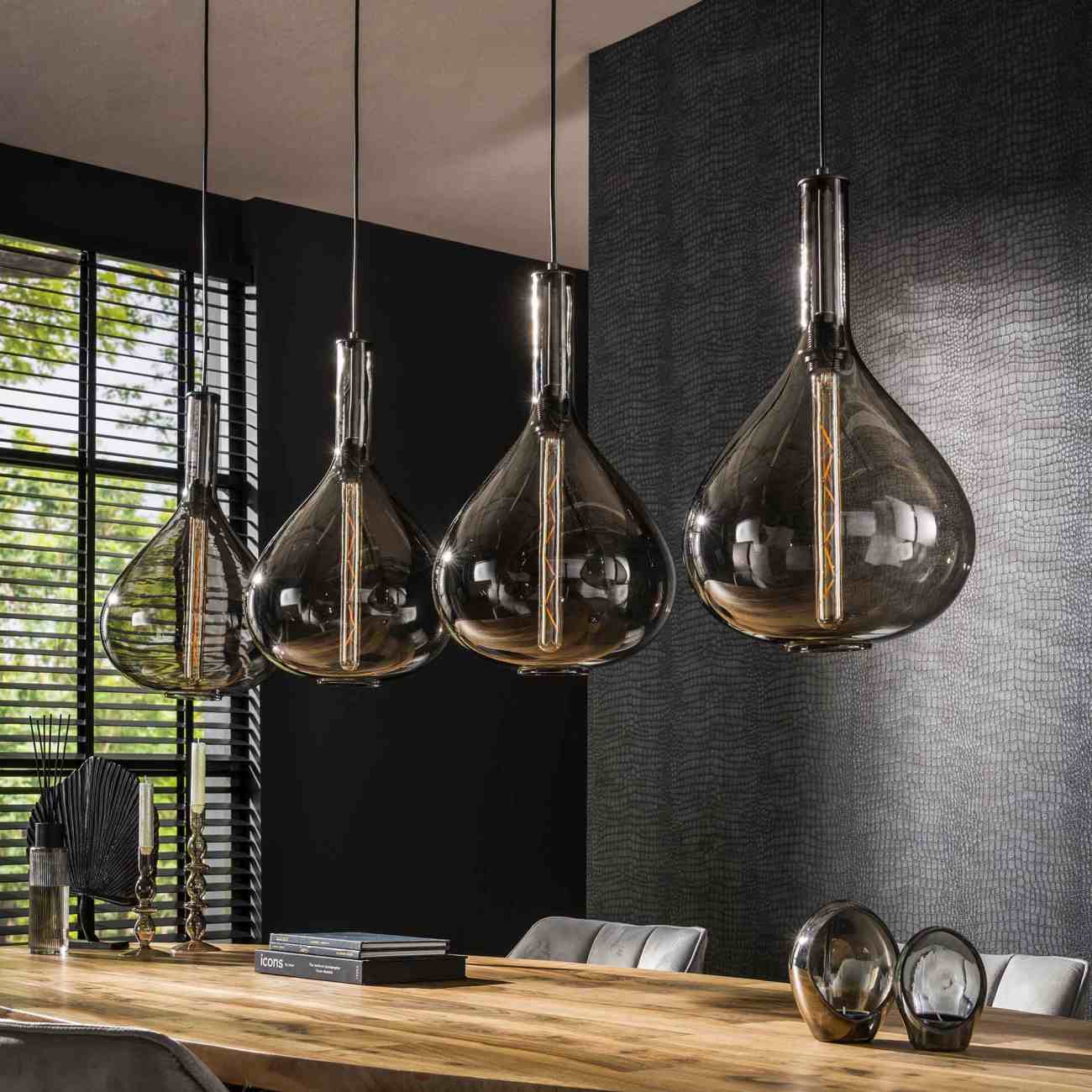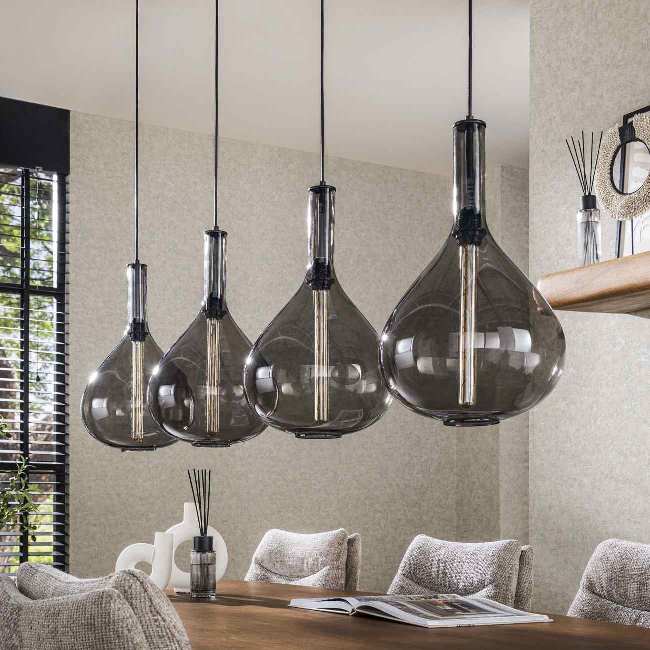 Produktinformationen "Hängeleuchte Caleba, 4-flammig - Rauchglas, Kalebasseform, inkl. LED"