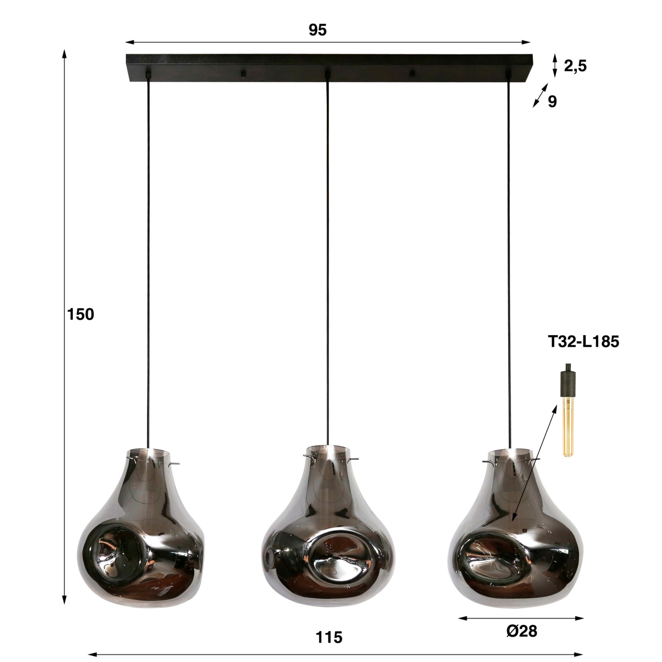 Lieferumfang: | 1 Hängelampe mit 3 Glasschirmen, Aufbauanleitung, 3 LED-Leuchtmittel Röhre T32-L185 18,5 cm |