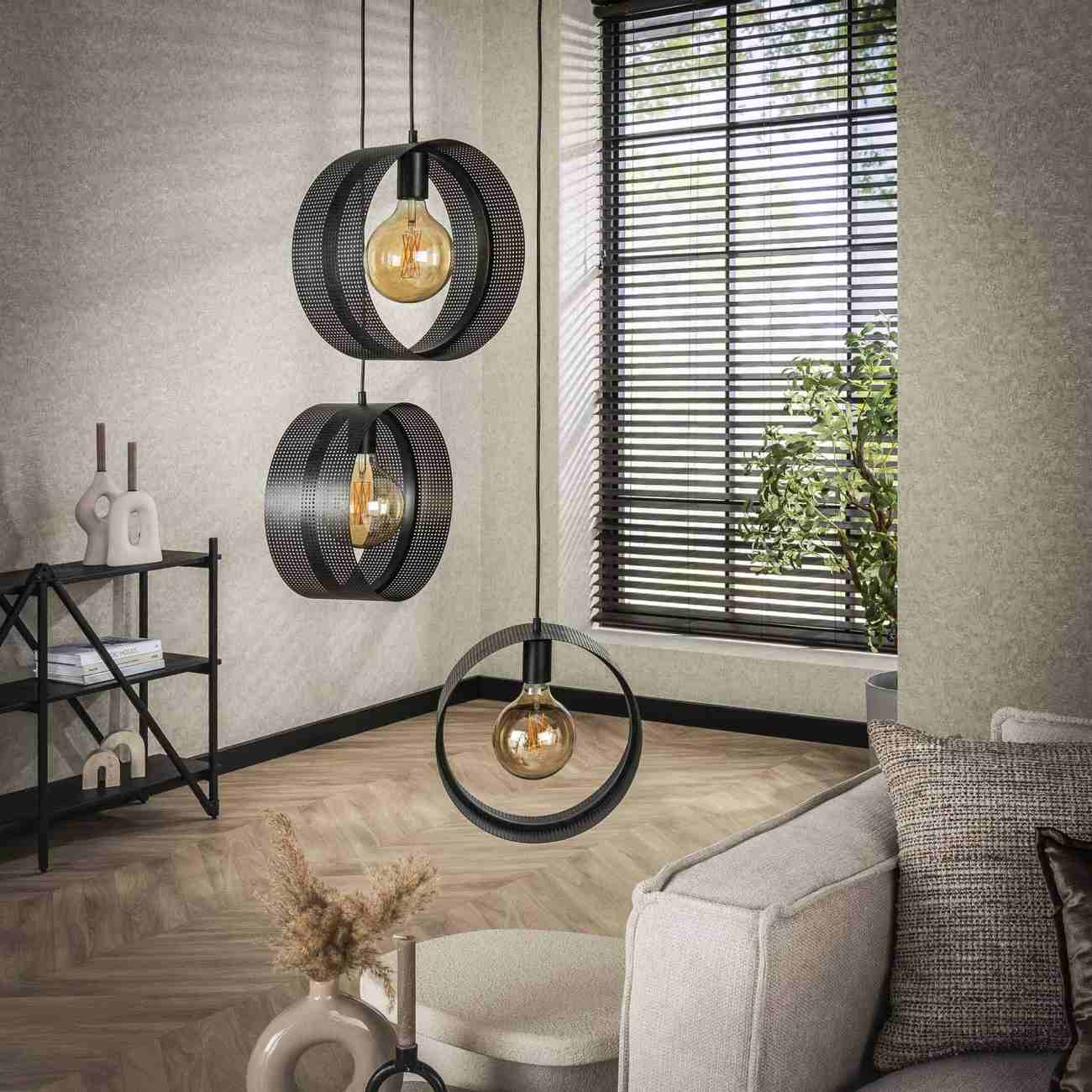 Hinweis (Material): | Die drei Kreise hängen von einer runden Deckenplatte mit drei Kunststoffschnüren, wodurch die Lampe stabil ist. |