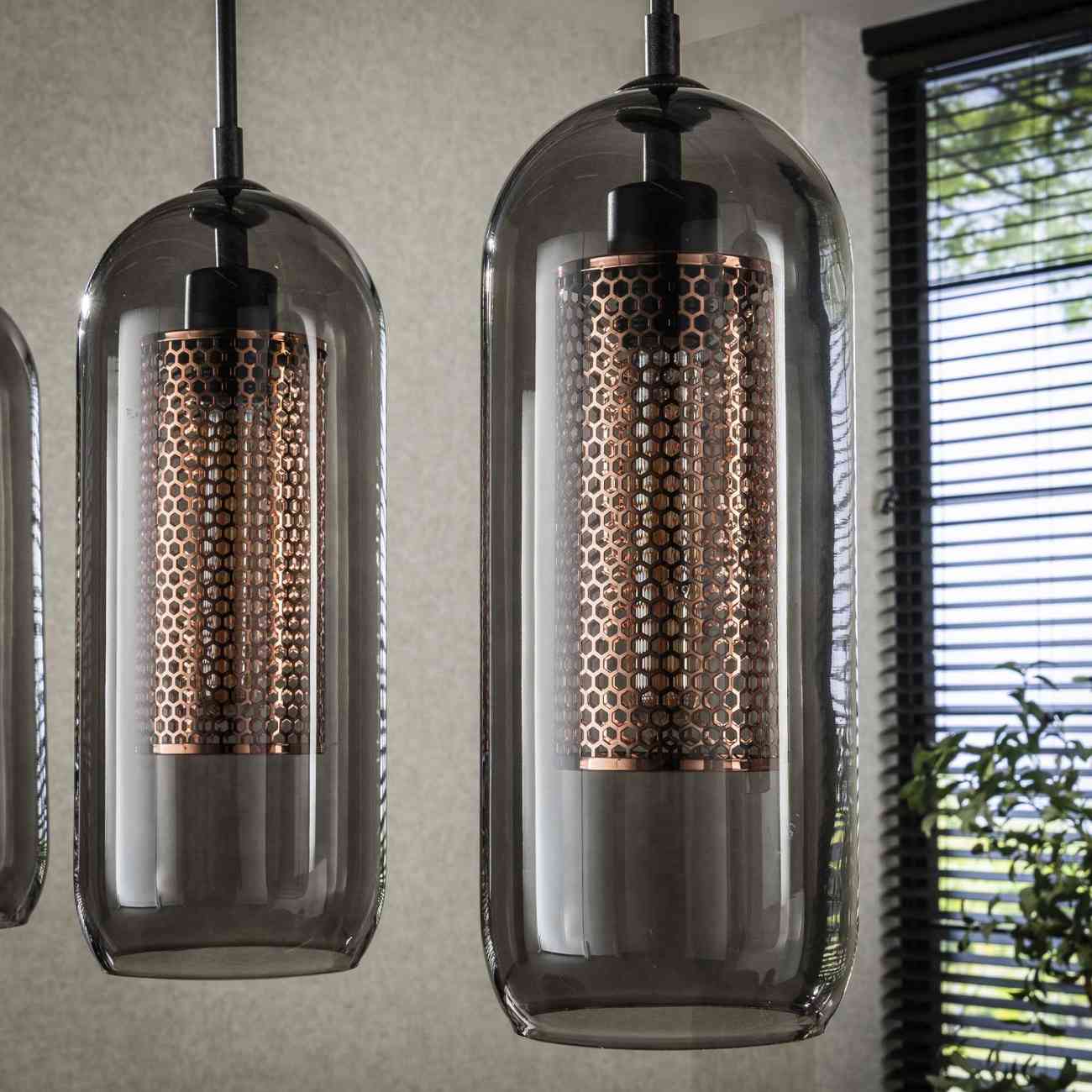 Produktinformationen "Hängeleuchte Kuferg, 4-flammig - Rauchglas mit Kupfergitter, inkl. LED"