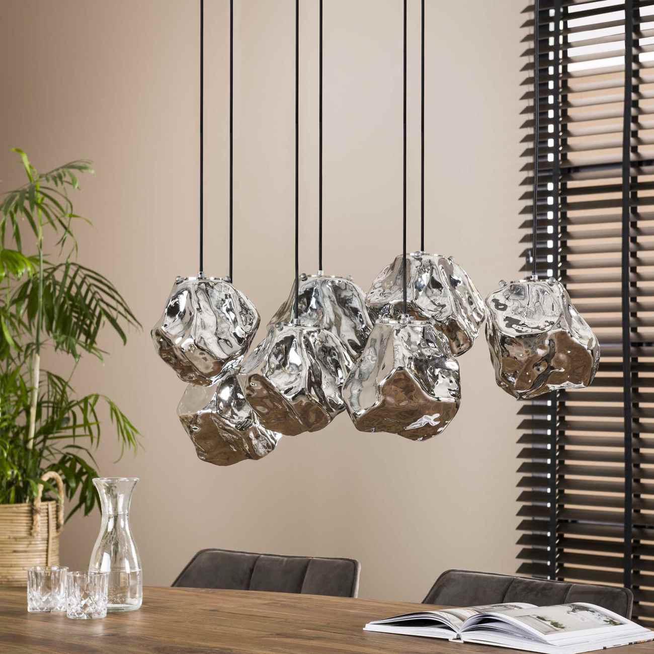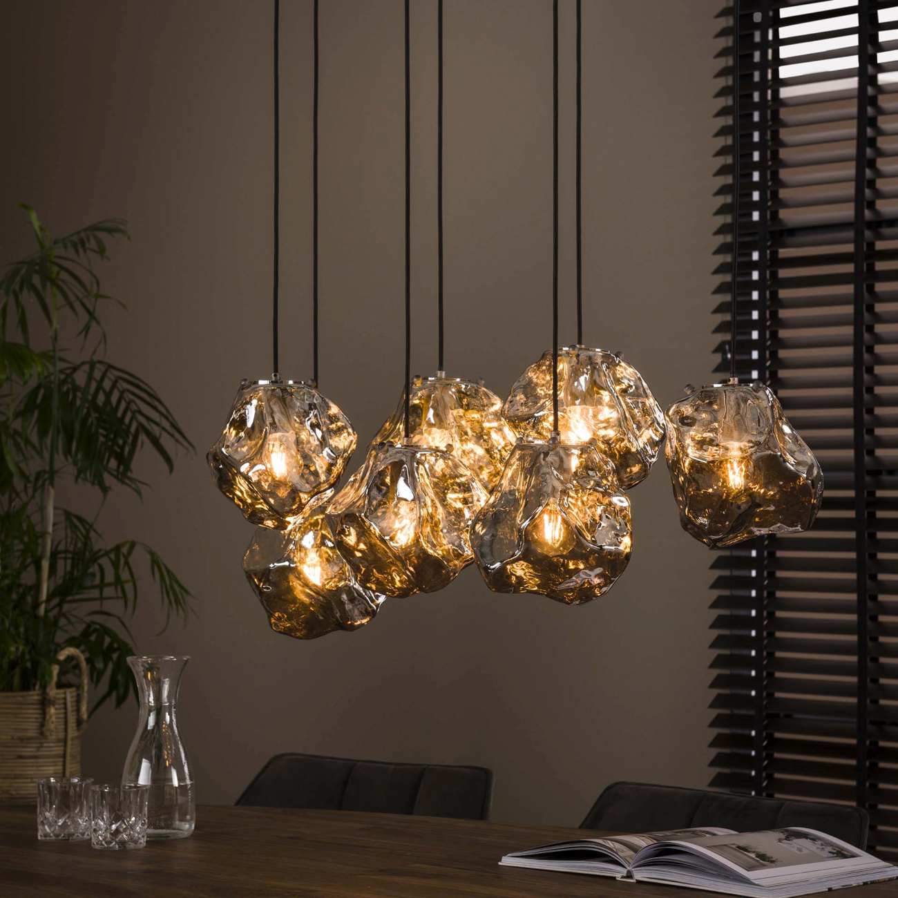 Produktinformationen "Hängeleuchte Moldira, 7-flammig - mundgeblasenes Chromglas, inkl. LED"