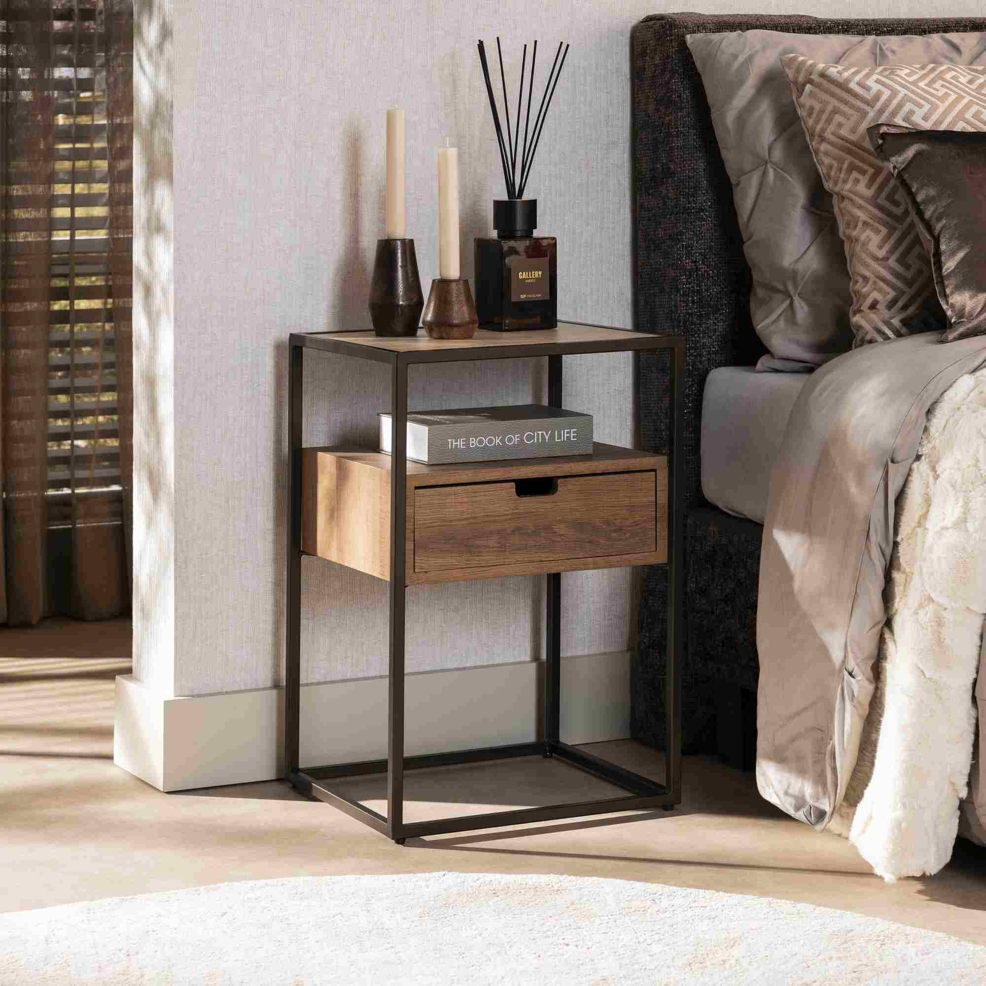 Produktinformationen "Nachttisch Ottesa mit Schublade in Eichenoptik und Keramikplatte"