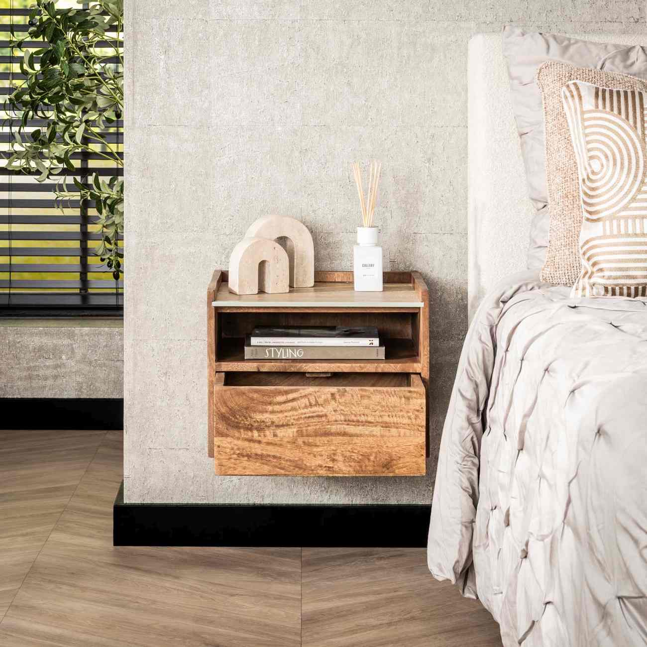 Produktinformationen "Nachttisch Tratin - Mangoholz massiv Natur, mit Schublade & Fach"