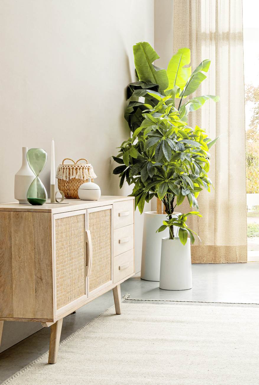 | Material Info: | Mangoholz, MDF-Holz, Rattan |