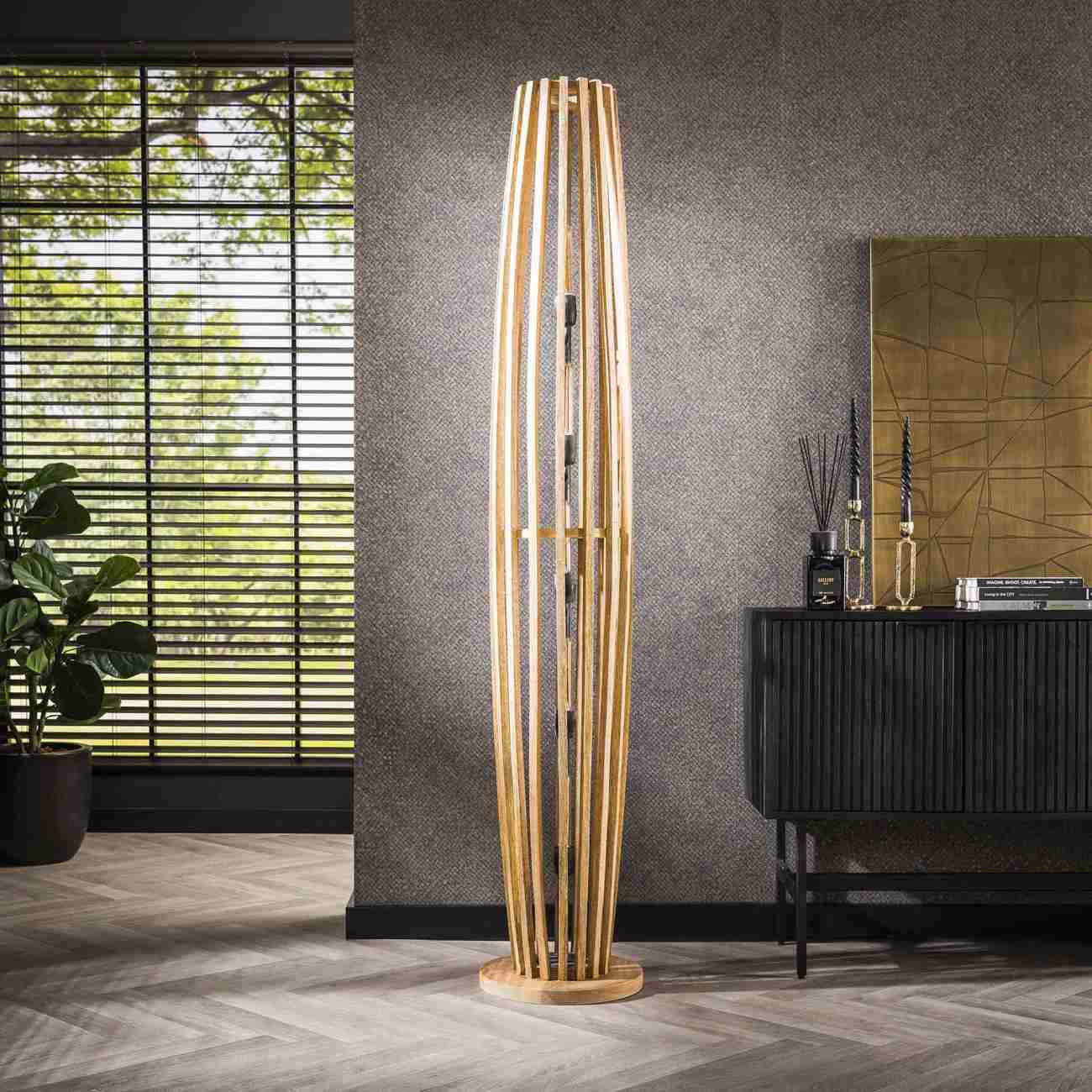 Produktinformationen "Stehleuchte Arbegura, 5-flammig - Mangoholz Natur, Lamellen, inkl. LED"