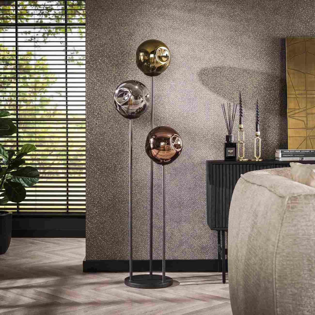 Produktinformationen "Stehleuchte Atomoira, 3-flammig - Glas, Metall in Artic-Schwarz, LED"
