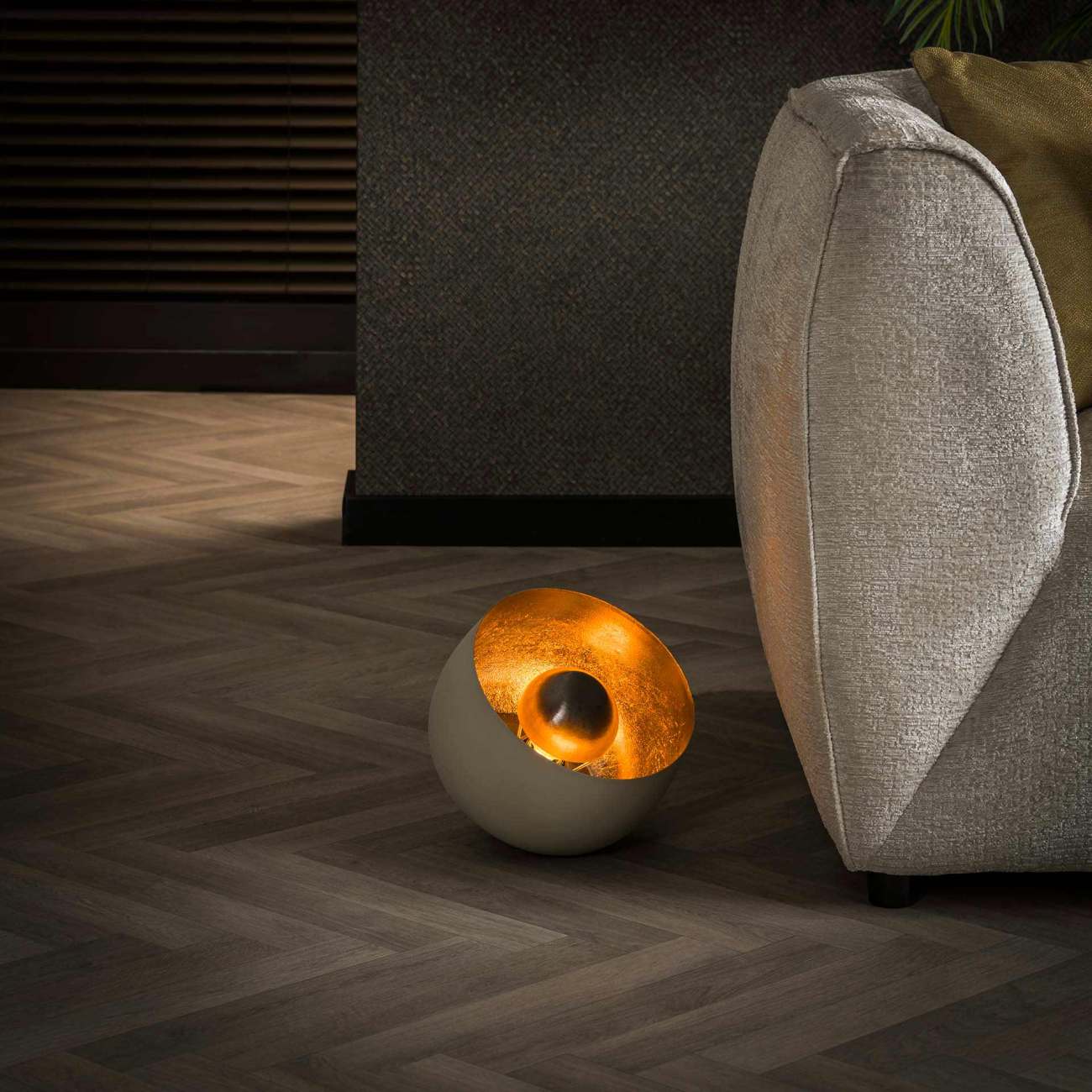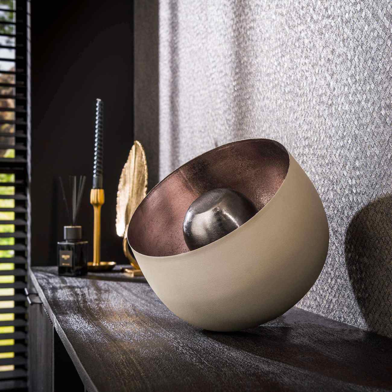 Produktinformationen "Tischleuchte Gong - Metall Beige matt, mit Reflektor & LED, Ø 28 cm"