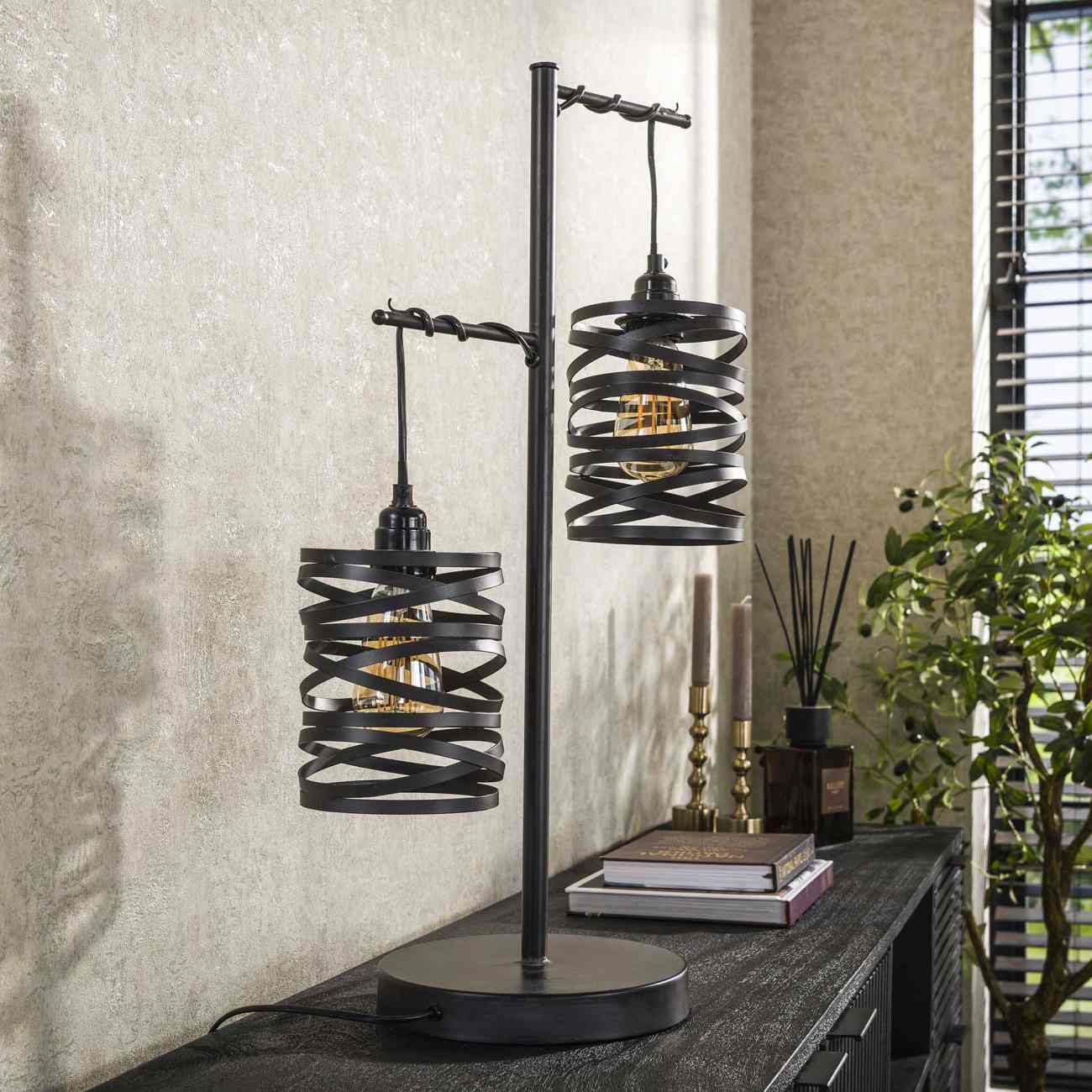 Produktinformationen "Tischleuchte Spiralo, 2-flammig - Metall Schiefergrau, Ø 14 cm, LED"