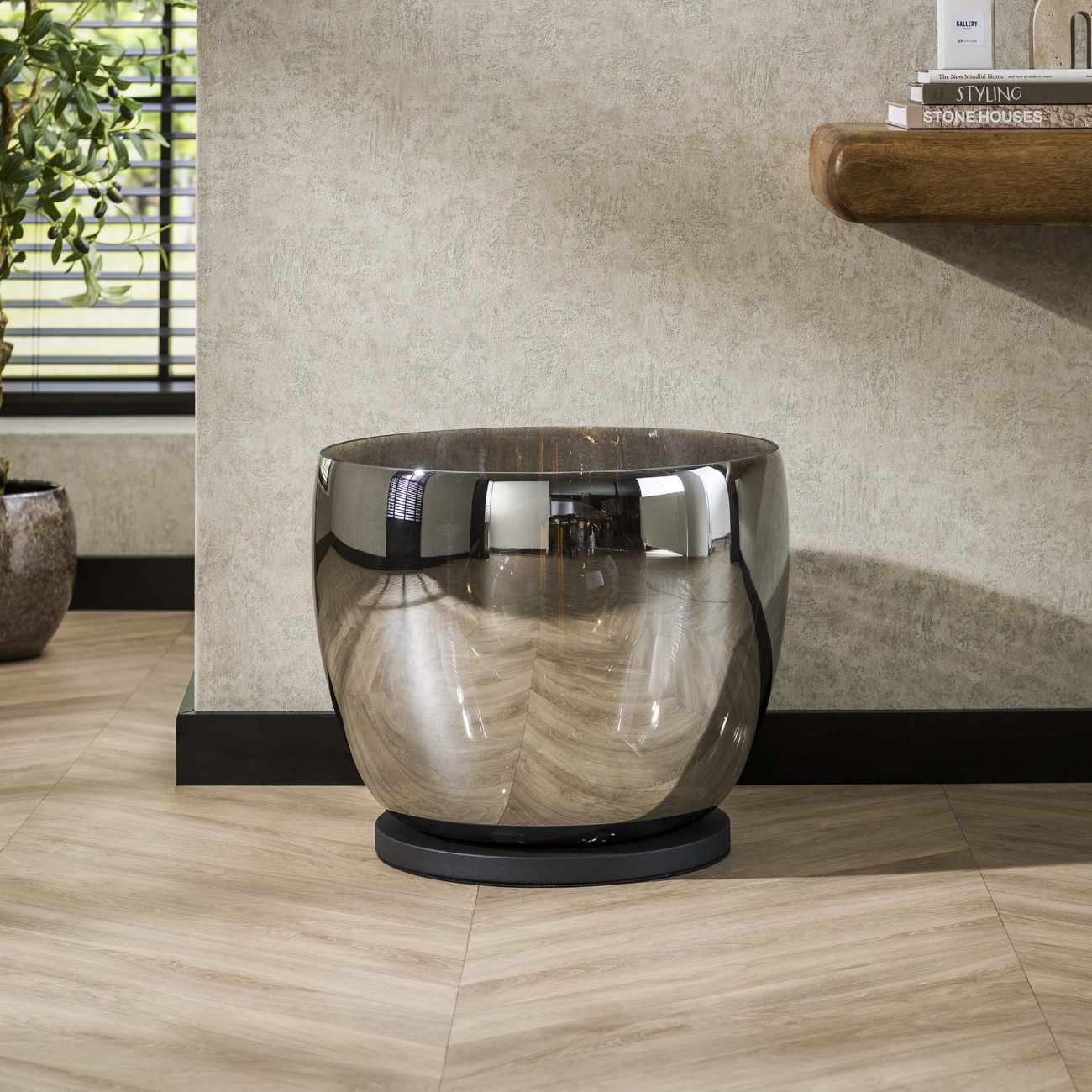 Besonderheiten: | Glasstruktur mit Rauchglas-Optik mit stilvollem Metallsockel |