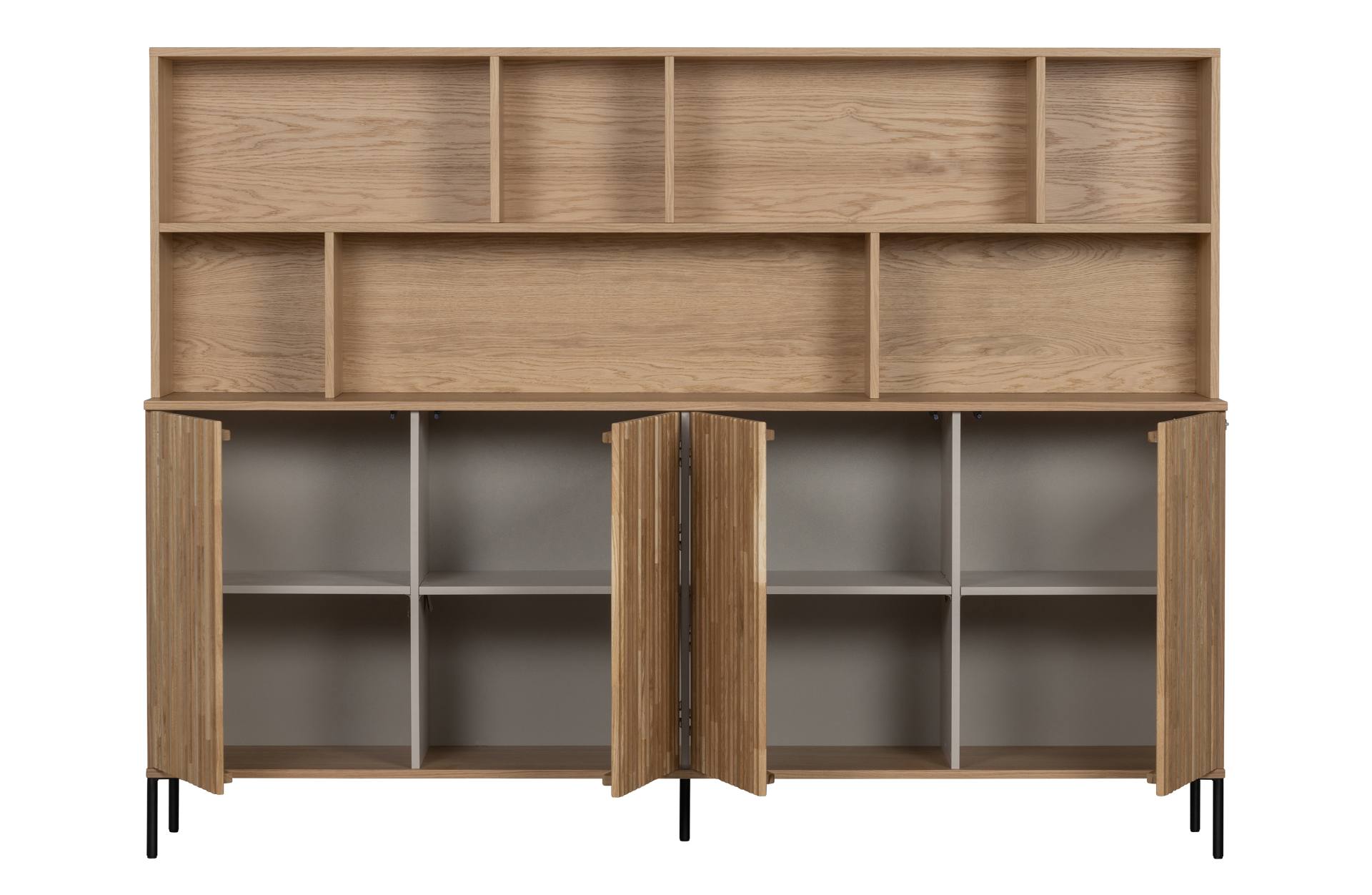 | Abmessungen BxTxH (Fächer): | 1. 62x31x31 cm (2x) / 2. 31x31x31 cm (3x) / 3. 67x31x31 cm (1x) / 4. 100x31x31 cm (1x) / 5. 47x40x33 cm (4x) / 6. 49x40x33 cm ( 4x) |