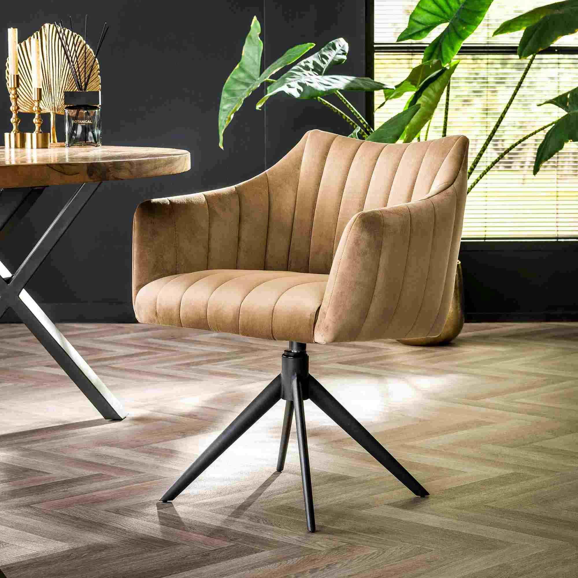 Produktinformationen "2er-Set Armlehnstuhl Armovell Drehbar - Samt, Champagner"