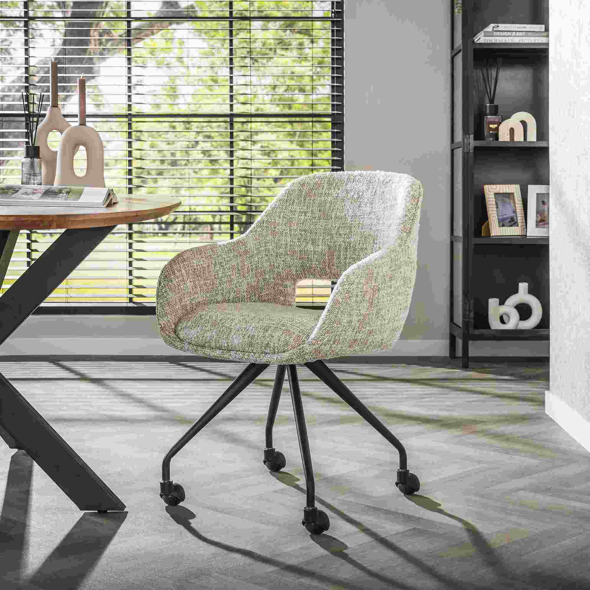 Produktinformationen "2er-Set Armlehnstuhl Rollovato mit Rollen - Webstoff, Creme-Grau"