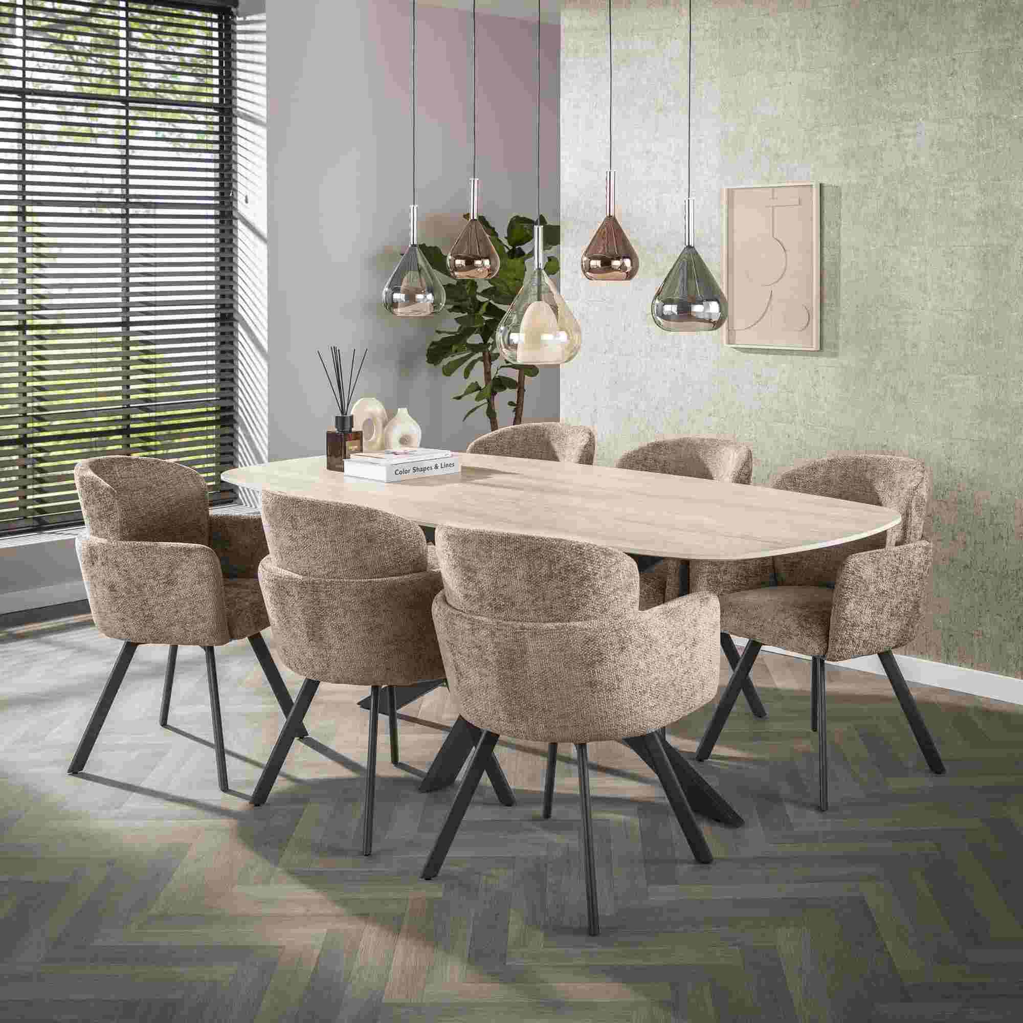 Produktinformationen "2er-Set Armstuhl Ecarm 360° drehbar mit Chenille-Bezug, Champagne"