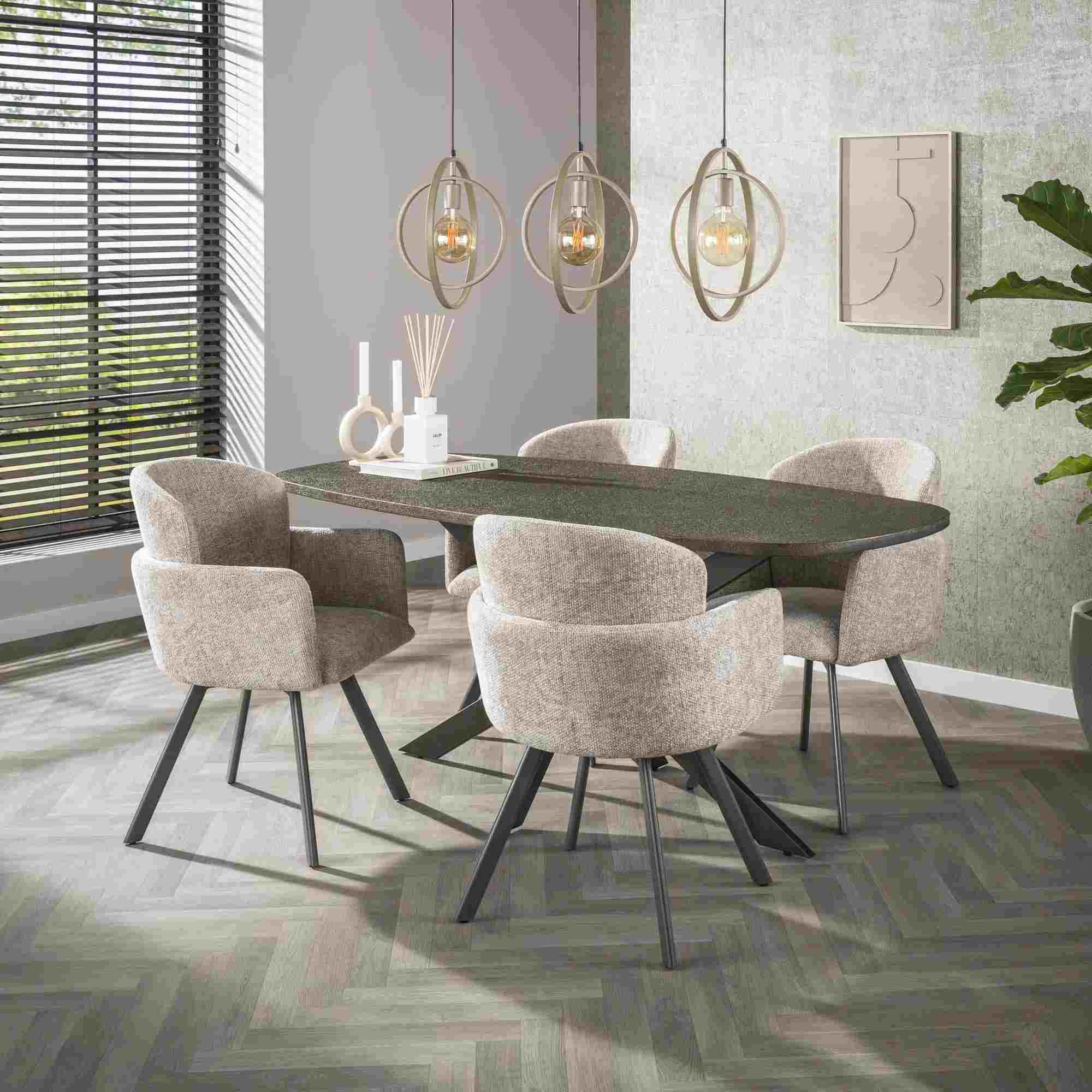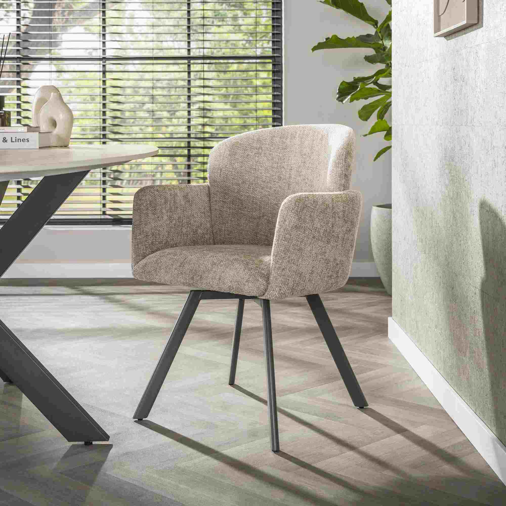 Produktinformationen "2er-Set Armstuhl Ecarm 360° drehbar mit Chenille-Bezug, Sand"
