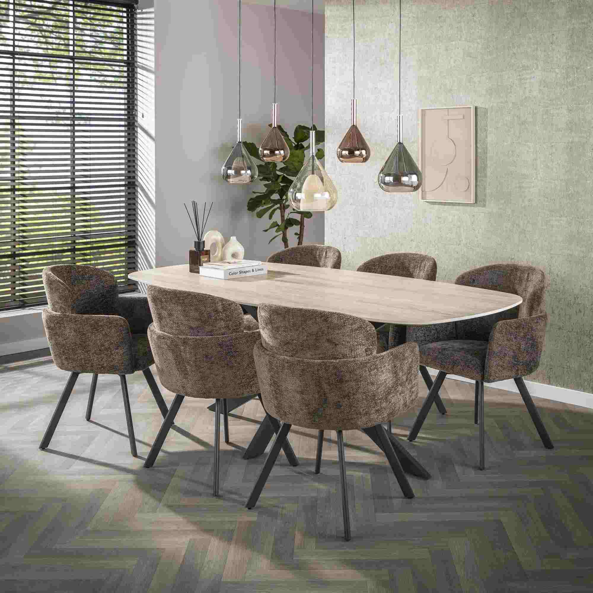 Produktinformationen "2er-Set Armstuhl Ecarm 360° drehbar mit Chenille-Bezug, Taupe"